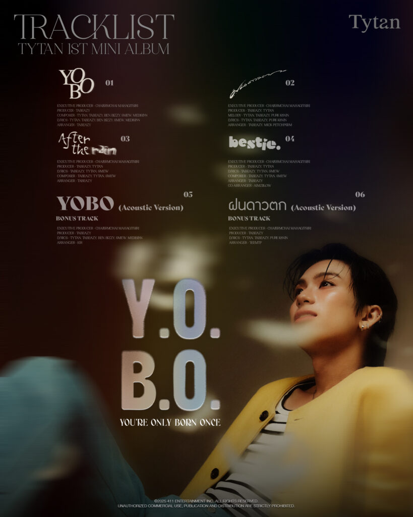 สำนักข่าวบริคอินโฟ – “ไทแทน ทีปประสาน” หรือ TYTAN ศิลปินหนุ่มจากโฟร์ วัน วัน มิวสิก เตรียมปล่อยมินิอัลบั้มแรกในชีวิต “Y.O.B.O. [YOU’RE ONLY BORN ONCE]” พร้อมจัดงานแฟนไซน์ตามคำเรียกร้องของแฟนคลับ หรือ “ธันเดอร์”