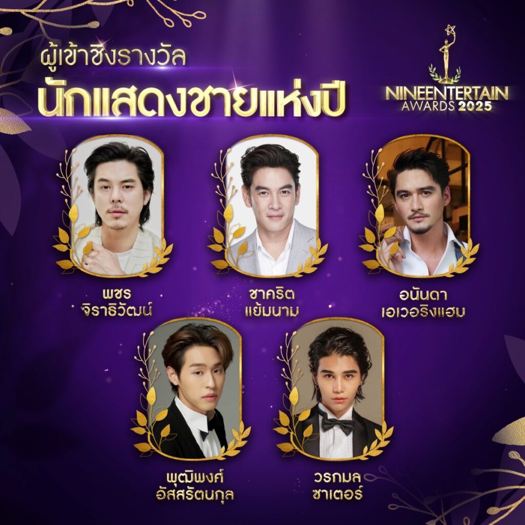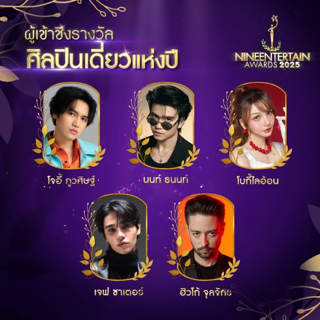 บริษัท อสมท จำกัด (มหาชน) เตรียมจัดงานประกาศรางวัลอันทรงเกียรติสำหรับคนในวงการบันเทิง “ไนน์เอ็นเตอร์เทน อวอร์ดส์ 2025” ซึ่งจัดโดย ไนน์เอ็นเตอร์เทน เป็นประจำทุกปี เพื่อเป็นกำลังใจและส่งเสริมศิลปิน นักแสดง ในหลากหลายสาขา โดยล่าสุดได้มีการเปิดเผยรายชื่อผู้เข้าชิงใน 9 สาขาเป็นที่เรียบร้อยแล้ว