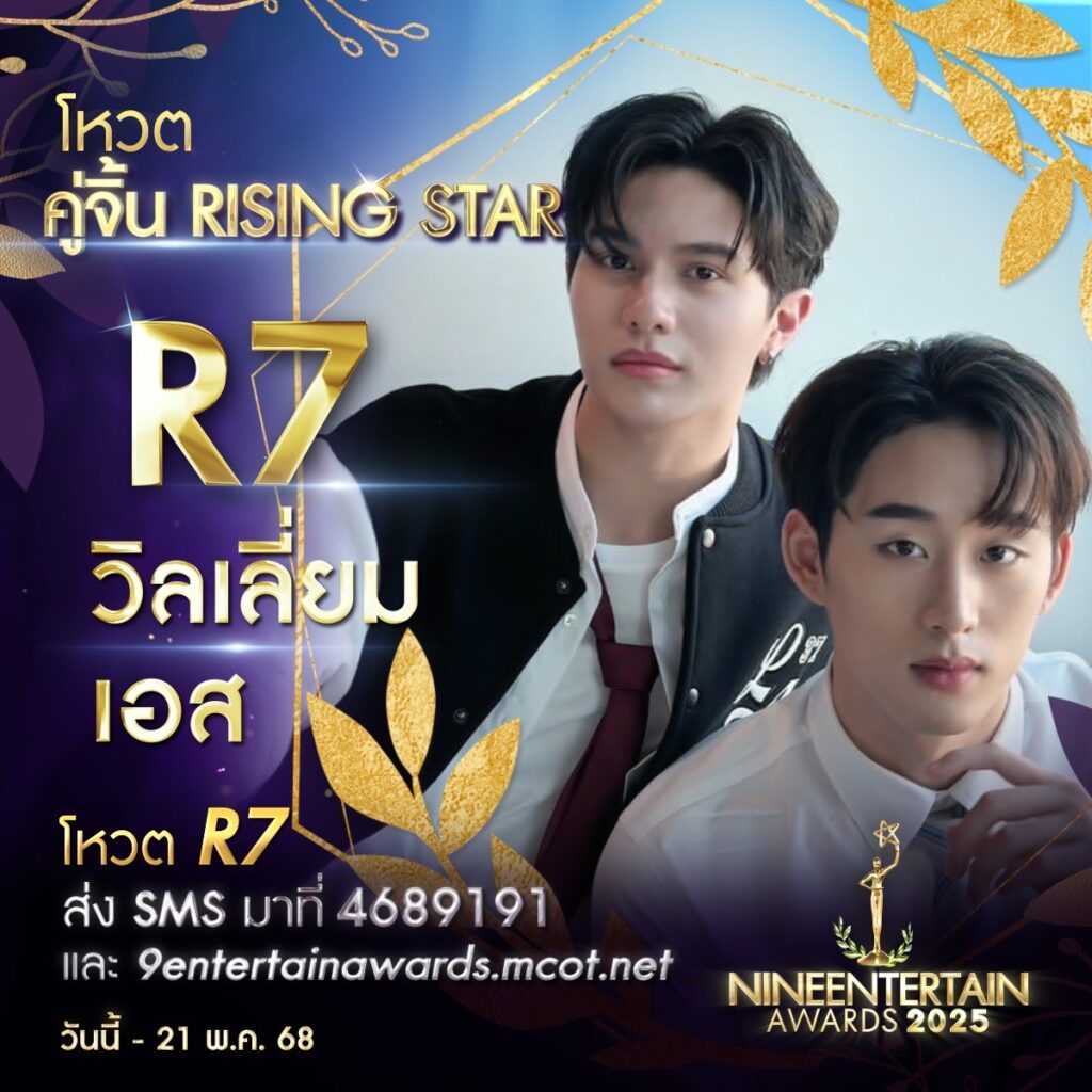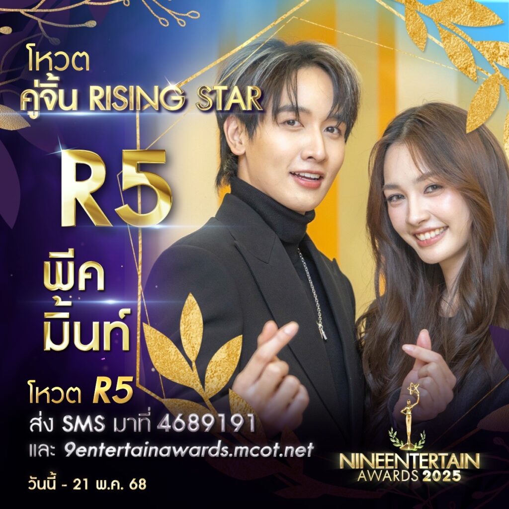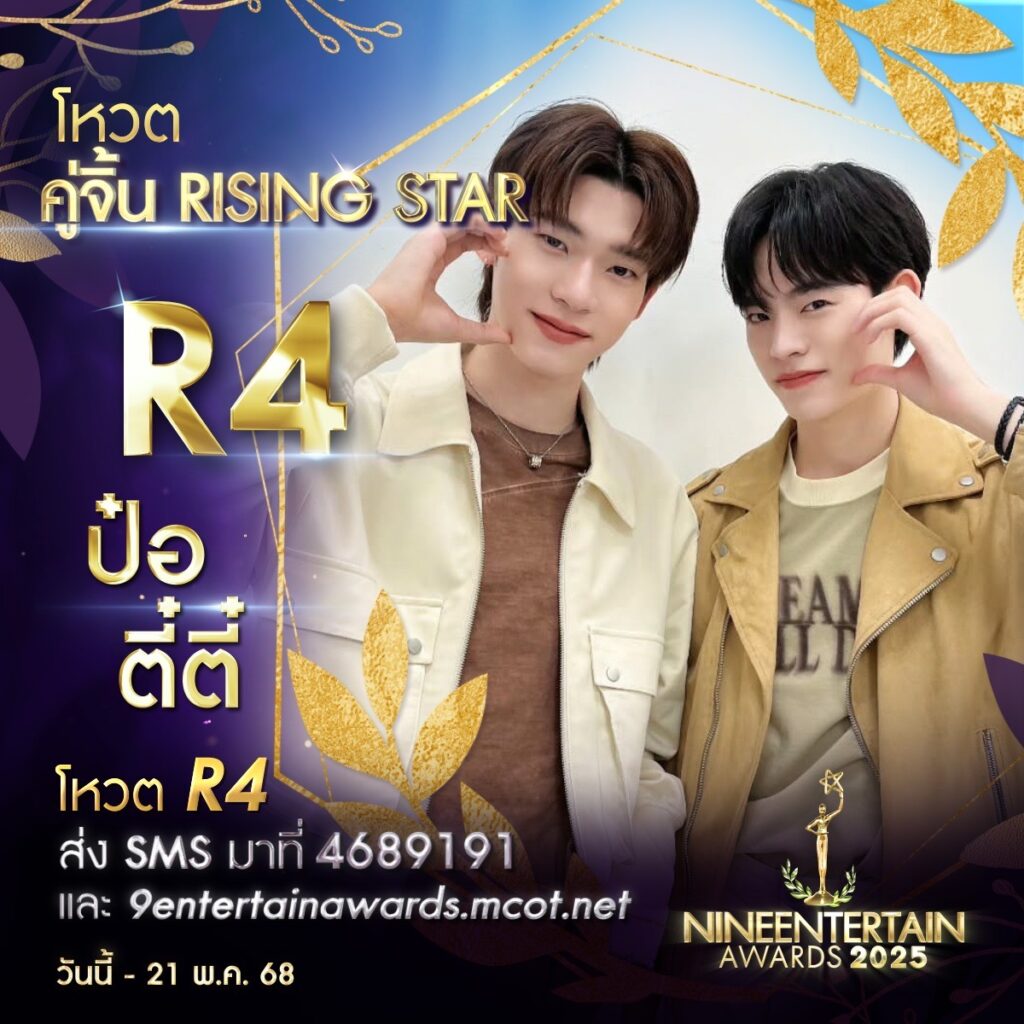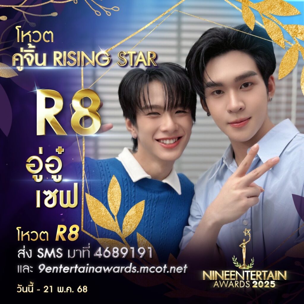 บริษัท อสมท จำกัด (มหาชน) เตรียมจัดงานประกาศรางวัลอันทรงเกียรติ “NINEENTTERTAIN AWARDS 2025″ (ไนเพื่อเป็นขวัญและกำลังใจให้กับบุคคลากรในวงการบันเทิงหลากหลายสาขา โดยล่าสุด ไนน์เอ็นเตอร์เทนได้เปิดให้ประชาชนทั่วไปร่วมโหวตในสาขารางวัล “คู่จิ้นRisingStar” ซึ่งเป็นอีกหนึ่งรางวัลที่ได้รับความสนใจอย่างมาก