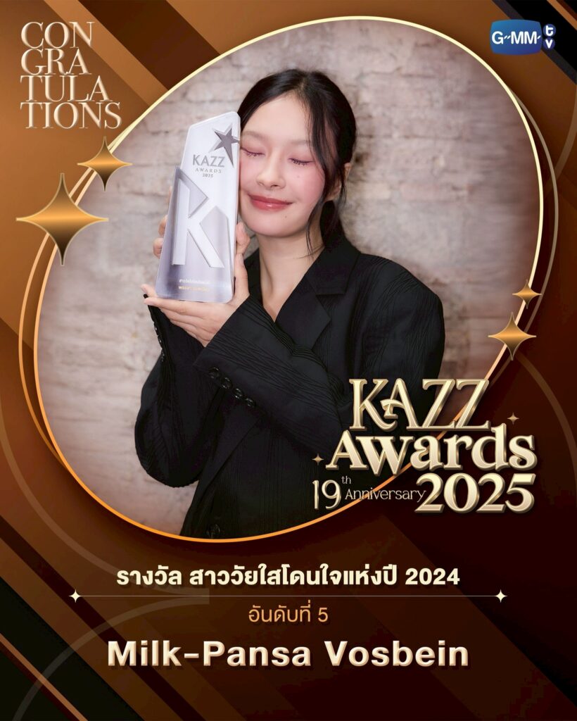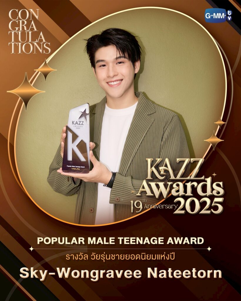 “GMMTV” คว้ารางวัล “KAZZ Awards 2025” รวม 6 สาขา “สกาย-นานิ-เอมี่-มิ้ลค์” รับรางวัลนักแสดงแห่งปี