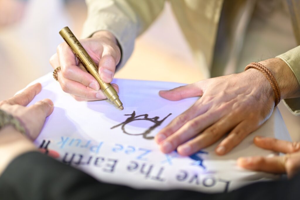 กิจกรรมประมูลเสื้อรักษ์โลกที่จัดขึ้นเมื่อวันที่ 7 มิถุนายน 2568 ได้รับความสนใจอย่างมากจากแฟนคลับและผู้ที่สนใจ โดยมีเสื้อรักษ์โลกลิมิเต็ด เอดิชัน ที่ออกแบบโดย ซี พฤกษ์ พานิช และเสื้อส่วนตัวของเขา รวม 6 แบบ 6 สไตล์ พร้อมลายเซ็นจริง และสิทธิ์ในการถ่ายภาพคู่ โดยบรรยากาศของการประมูลเป็นไปอย่างคึกคัก หนุ่มซี พฤกษ์ ได้กล่าวถึงความรู้สึกที่ได้มาเป็นส่วนหนึ่งในภารกิจนี้ว่า “ต้องขอบคุณห้างเซ็นทรัล และห้างโรบินสันมาก ๆ เลยนะครับ ที่ให้ผมได้มาร่วมกิจกรรมดี ๆ แบบนี้ และที่สำคัญขอขอบคุณเอฟซีทุก ๆ คนที่มาร่วมแสดงพลังรักษ์โลกไปด้วยกันผ่านการประมูลเสื้อรักษ์โลกที่ผมตั้งใจออกแบบเพื่องานนี้โดยเฉพาะ ซึ่งผมดีใจมาก ๆ ที่ได้เป็นส่วนเล็ก ๆ ในการช่วยโลกของเรา และคิดว่าเอฟซีทุกคนที่มาร่วมกิจกรรมในวันนี้ก็คงรู้สึกไม่ต่างกัน แต่การรักษ์โลกของเราจะไม่จบแค่ในวันนี้ ผมอยากฝากให้เอฟซีและทุก ๆ คนช่วยกันรักษ์โลกในทุก ๆ วัน เริ่มจากสิ่งง่าย ๆ ใกล้ตัว เพราะพลังเล็ก ๆ ที่สม่ำเสมอของพวกเราจะช่วยทำให้โลกน่าอยู่ขึ้นแน่นอนครับ”