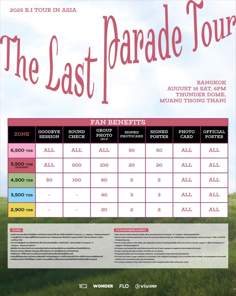 B.I ศิลปินหนุ่มมากความสามารถ เตรียมระเบิดความมันส์ในคอนเสิร์ต “2025 B.I TOUR: The Last Parade Tour in BANGKOK” วันที่ 16 สิงหาคม 2568 ที่ธันเดอร์โดม เมืองทองธานี เปิดจำหน่ายบัตร 5 กรกฎาคมนี้