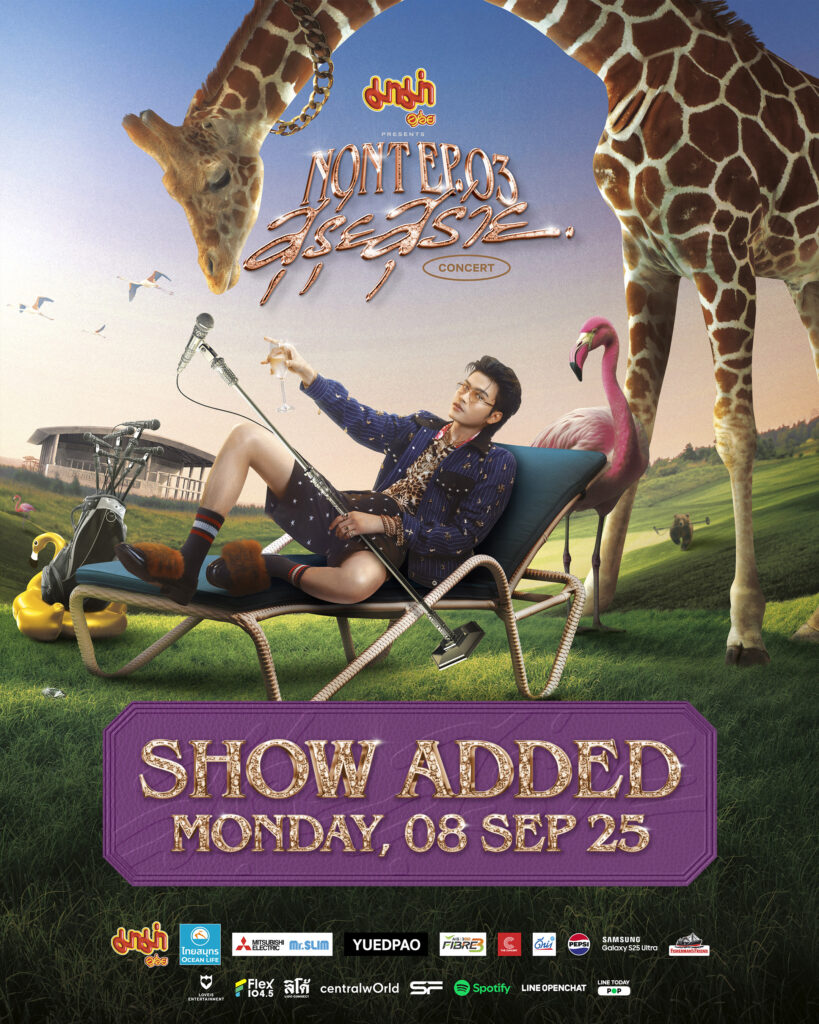 เพื่อตอบรับกระแสความต้องการที่ล้นหลาม ผู้จัดคอนเสิร์ต LOVEiS SHOWBiZ จึงได้ประกาศเพิ่มรอบการแสดงของ “มาม่า Presents NONT EP.03 สุรุ่ยสุร่าย CONCERT” ในวันจันทร์ที่ 8 กันยายน 2568 ที่ อิมแพ็ค อารีน่า เมืองทองธานี โดยจะเริ่มจำหน่ายบัตรสำหรับรอบการแสดงที่เพิ่มขึ้นนี้ในวันพฤหัสบดีที่ 10 กรกฎาคม 2568 ตั้งแต่เวลา 10.00 น. เป็นต้นไป ผ่านช่องทาง https://www.theconcert.com/presale เท่านั้น