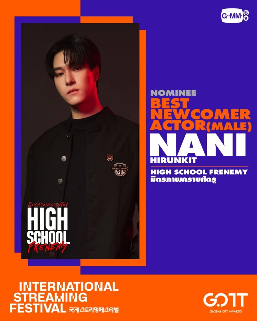 สำหรับรางวัลที่ GMMTV ได้รับการเสนอชื่อคือ รางวัล “Best Newcomer Actor (Male)” โดยมีนักแสดง 2 ท่าน ได้แก่ สกาย วงศ์รวี นทีธร และ นานิ หิรัญกฤษฎิ์ ช่างคำ ซึ่งทั้งคู่ได้รับการเสนอชื่อจากผลงานซีรีส์เรื่อง “High School Frenemy มิตรภาพ คราบศัตรู”
