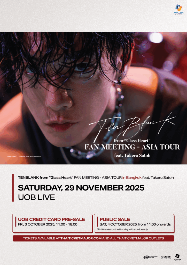 สำนักข่าวบริคอินโฟ – หลังจากสร้างความประทับใจให้กับแฟน ๆ ทั่วโลกด้วยบทบาทในซีรีส์ต่าง ๆ รวมถึงผลงานล่าสุดอย่างซีรีส์ Glass Heart ทาง Netflix ล่าสุดนักแสดงชื่อดัง ทาเครุ ซาโต้ หรือ Takeru Satoh กำลังจะมาพบปะแฟนคลับชาวไทยเป็นครั้งแรกในงาน TENBLANK from “Glass Heart” FAN MEETING – ASIA TOUR in Bangkok feat. Takeru Satoh