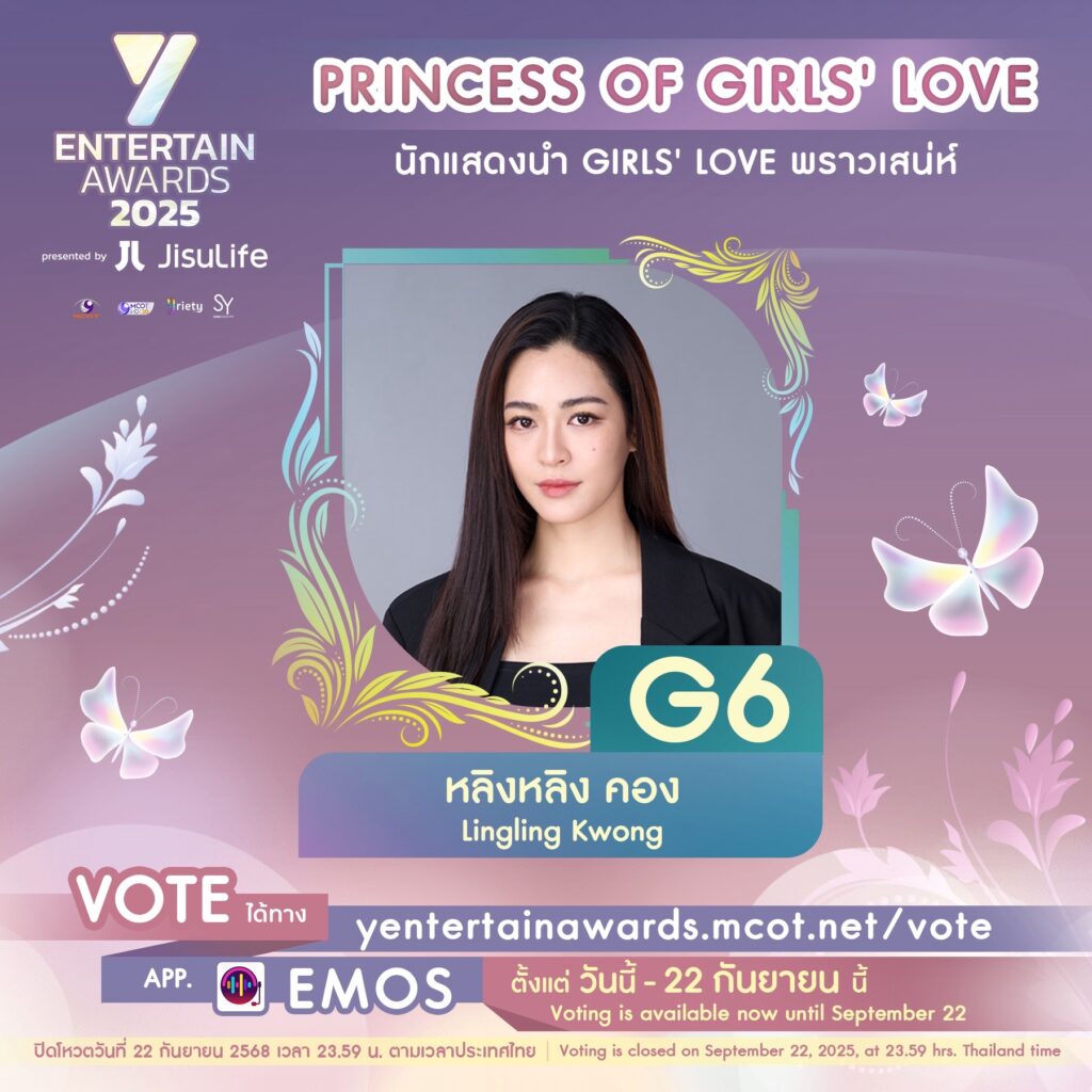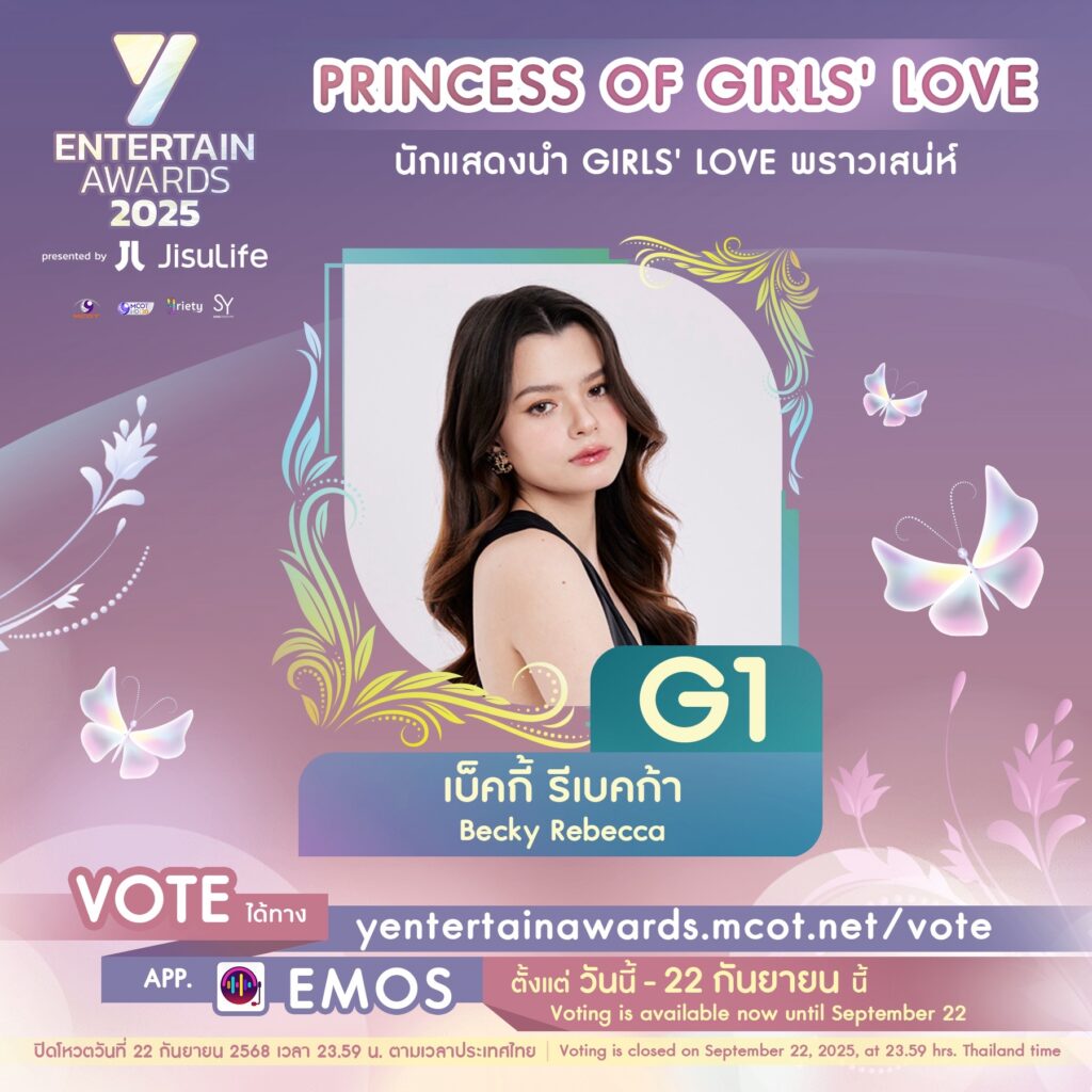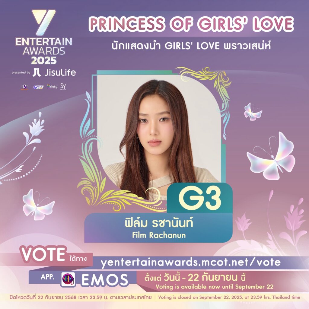 งานประกาศรางวัล “Y Entertain Awards 2025 presented by JisuLife” ซึ่งจัดโดย บริษัท อสมท จำกัด (มหาชน) และ บริษัท โซนิกซ์ ยูธ จำกัด โดย คุณก้อง ปิยะ เศวตพิกุล ได้เปิดรายชื่อผู้เข้าชิงรางวัลในสาขา Princess of Girls’ Love (นักแสดงนำ Girls’ Love พราวเสน่ห์) จำนวน 10 คน เพื่อให้แฟน ๆ ได้ร่วมโหวตหาผู้ชนะ