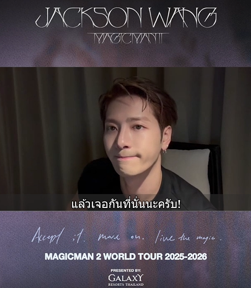 คอนเสิร์ต “MAGICMAN 2 WORLD TOUR 2025–2026 in Bangkok Presented by Galaxy Resorts Thailand” ของศิลปินระดับโลก แจ็คสัน หวัง เตรียมเปิดการแสดงในประเทศไทยแล้วในสัปดาห์หน้า หลังจากบัตรการแสดงในวันที่ 3-4 ตุลาคม 2568 ณ อิมแพ็ค อารีน่า เมืองทองธานี ขายหมดอย่างรวดเร็ว ล่าสุดผู้จัดได้ประกาศเพิ่มบัตรยืนเพื่อให้แฟนคลับที่ยังไม่มีบัตรสามารถเข้าร่วมงานได้