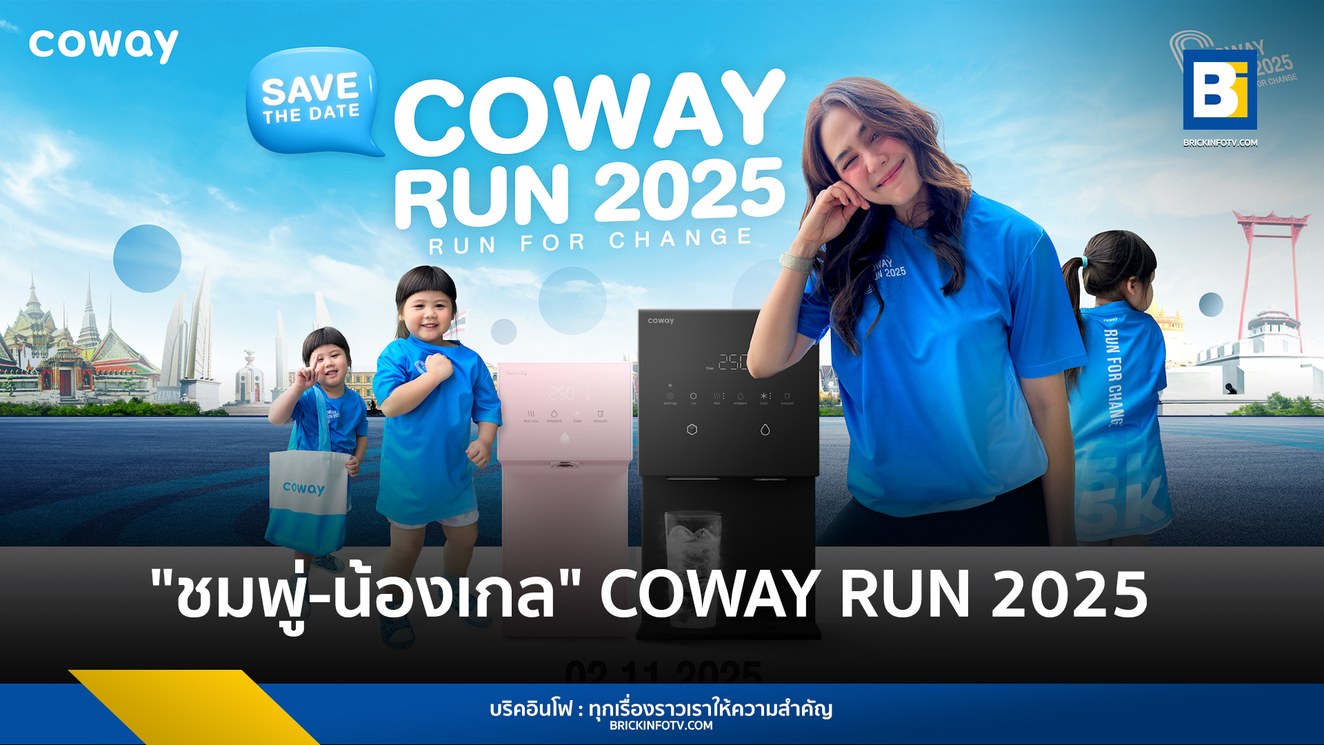 สำหรับผู้สนใจสามารถเข้าร่วมงาน “COWAY RUN 2025–RUN FOR CHANGE” และเตรียมพบกับ ชมพู่-น้องเกล ที่จะมาร่วมสร้างสีสันในงานวิ่งครั้งนี้ โดยเป็นการชวนทุกคนให้เริ่มต้นจากการดูแลสุขภาพด้วยวิธีพื้นฐานและง่ายที่สุดคือ การดื่มน้ำสะอาดไม่ขาดตอน ก่อนออกสตาร์ท วิ่งเพื่อสุขภาพที่ดี พร้อมกันในวันที่ 2 พฤศจิกายน 2568 ณ ลานคนเมือง