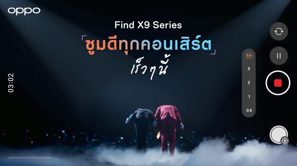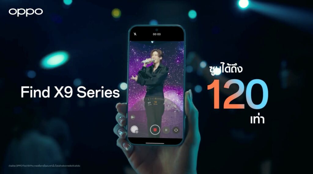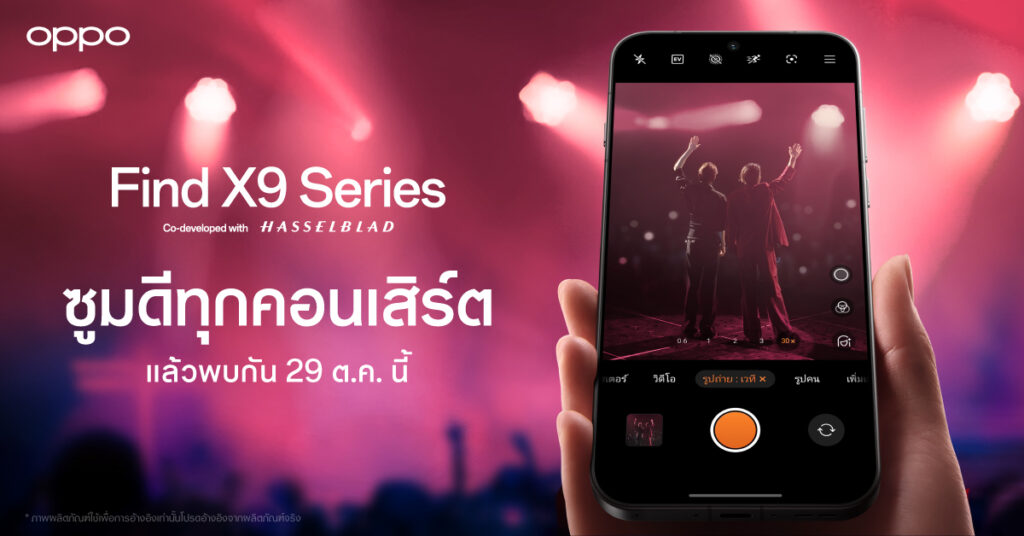 ออปโป้ ไทยแลนด์ เตรียมเปิดตัวสมาร์ตโฟนแฟลกชิปรุ่นล่าสุด OPPO Find X9 Series อย่างเป็นทางการในวันที่ 29 ตุลาคม นี้ โดยมุ่งเน้นที่ความสามารถด้านการถ่ายภาพที่ตอบโจทย์ผู้ใช้งานที่ชื่นชอบการชมคอนเสิร์ตเป็นพิเศษ เนื่องจากมาพร้อมกับกล้อง 200MP Hasselblad Telephoto และฟีเจอร์ 120x Super Zoom ซึ่งถูกนำเสนอว่าเป็นสมาร์ตโฟนที่มอบประสบการณ์ซูมภาพได้อย่างคมชัดในทุกคอนเสิร์ต