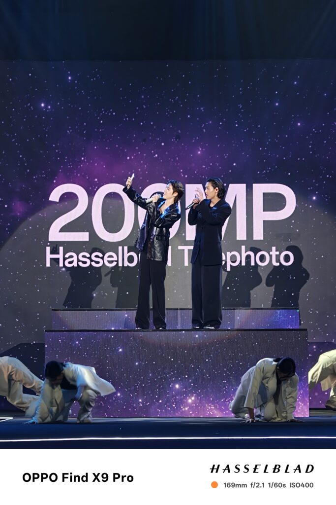 ภายในงานเปิดตัว OPPO Find X9 Series ที่จัดขึ้นอย่างยิ่งใหญ่ OPPO ได้แสดงศักยภาพของสมาร์ตโฟนรุ่นใหม่ที่มาพร้อมกล้อง 200MP Hasselblad Telephoto ในรุ่น OPPO Find X9 Pro และพลังซูม 120x Super Zoom โดยมีสองศิลปินชื่อดังอย่าง บิวกิ้น พุฒิพงศ์ และ พีพี กฤษฏ์ ขึ้นโชว์เพลง นับหนึ่ง และ ขอโทษละกัน ก่อนจะปิดท้ายด้วยเพลงคู่ ยอม ซึ่งทั้งคู่ได้กล่าวถึงประสบการณ์การใช้ชีวิตบนเวทีคอนเสิร์ตที่เห็นผู้ชมพยายามบันทึกภาพการแสดง