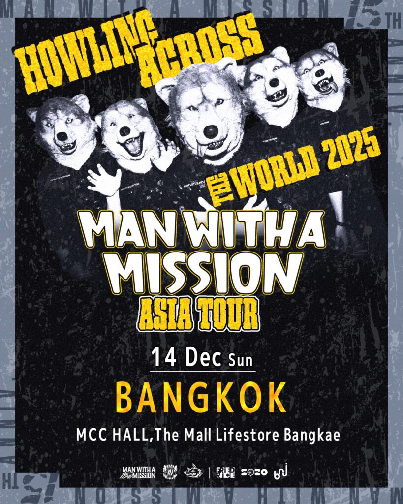 สำนักข่าวบริคอินโฟ – วงร็อกชื่อดังจากประเทศญี่ปุ่น MAN WITH A MISSION (MWAM) ที่มาพร้อมเอกลักษณ์เฉพาะตัวด้วยการสวมหน้ากากหมาป่า กำลังจะกลับมาแสดงคอนเสิร์ตที่ประเทศไทยอีกครั้ง เพื่อเป็นโชว์ปิดท้าย “HOWLING ACROSS THE WORLD 2025 – ASIA TOUR” ในเดือนธันวาคมนี้ โดยคอนเสิร์ตจะจัดขึ้น ณ MCC HALL ชั้น 3 เดอะมอลล์ไลฟ์สโตร์ บางแค ซึ่งแฟนเพลงชาวไทยจะได้สัมผัสกับพลังดนตรีร็อกที่เร้าใจ พร้อมเพลงฮิตมากมาย รวมถึงเพลงที่ประกอบอนิเมะดังระดับโลกอย่าง “Kizuna no Kiseki” จาก Demon Slayer: Kimetsu no Yaiba