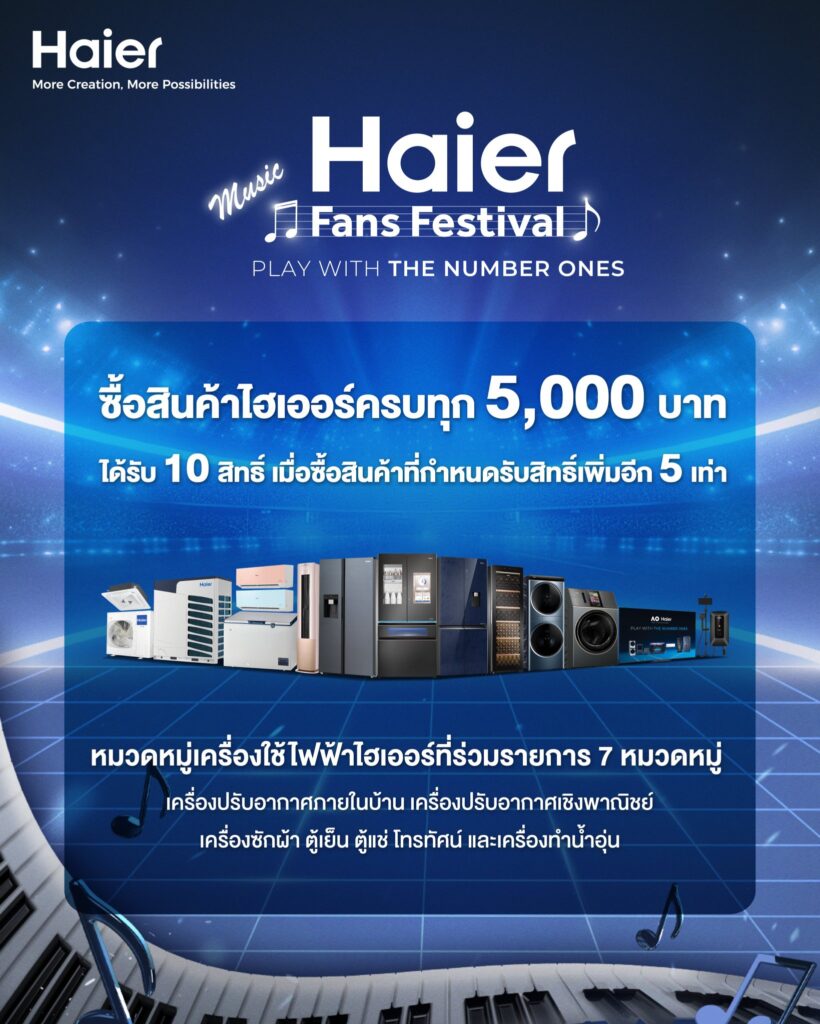 ไฮเออร์ (Haier) เตรียมจัดกิจกรรมใหญ่ส่งท้ายปี ดึง แบมแบม กันต์พิมุกต์ แบรนด์แอมบาสเดอร์ ร่วมงาน Haier Fans Festival, PLAY WITH THE NUMBER ONES เตรียมจัดแสดงโชว์พิเศษ ณ ลาน Amphitheater โครงการ One Bangkok ในวันที่ 26 ธันวาคม 2568 นี้