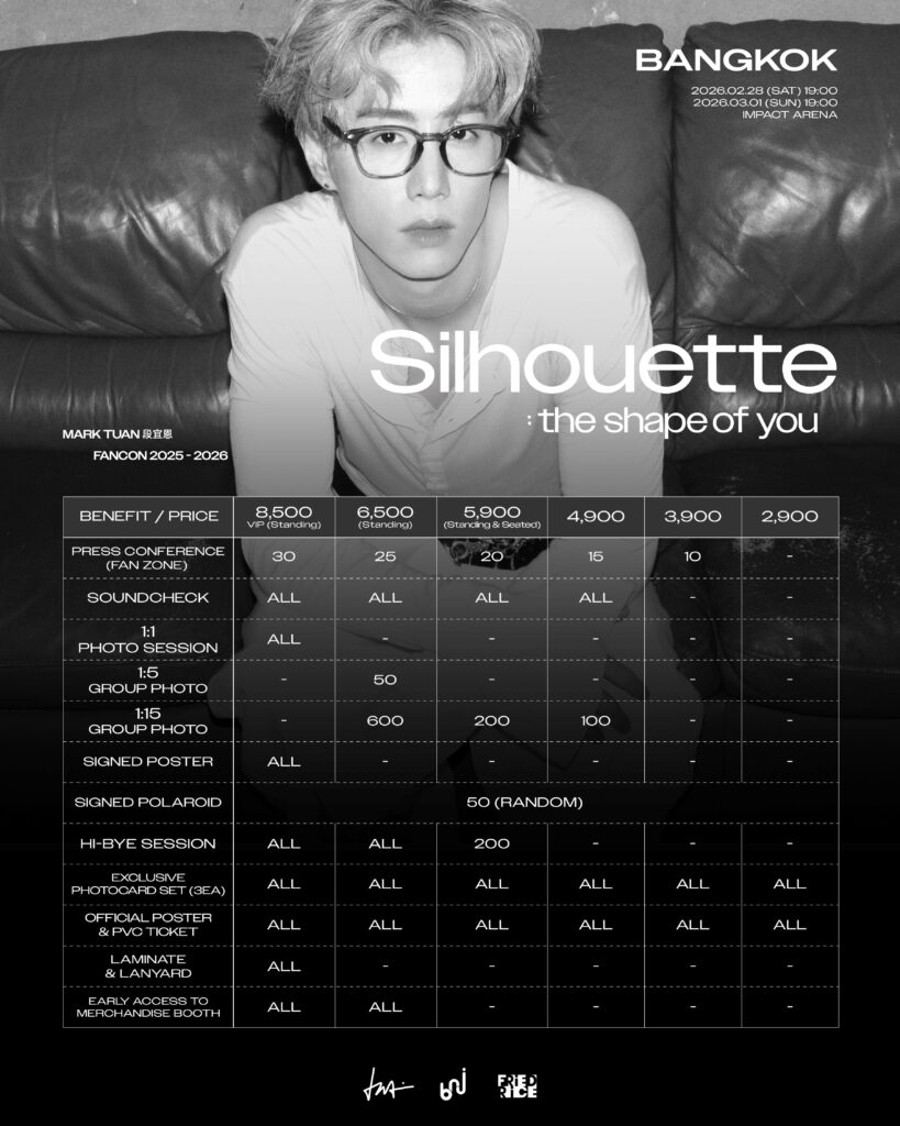 MARK TUAN Silhouette: The Shape of You FANCON 2026 in BANGKOK มีกำหนดการแสดงในวันเสาร์ที่ 28 กุมภาพันธ์ และวันอาทิตย์ที่ 1 มีนาคม 2569 ณ อิมแพ็ค อารีน่า เมืองทองธานี โดยผู้จัดงานมุ่งเน้นที่จะสร้างค่ำคืนแห่งความทรงจำผ่านโชว์ที่แสดงให้เห็นถึงเสน่ห์เฉพาะตัวและโมเมนต์ที่อบอุ่น เพื่อเติมเต็มความคิดถึงให้กับแฟนคลับที่รอคอยการแสดงเดี่ยวของเขาอย่างใกล้ชิด
