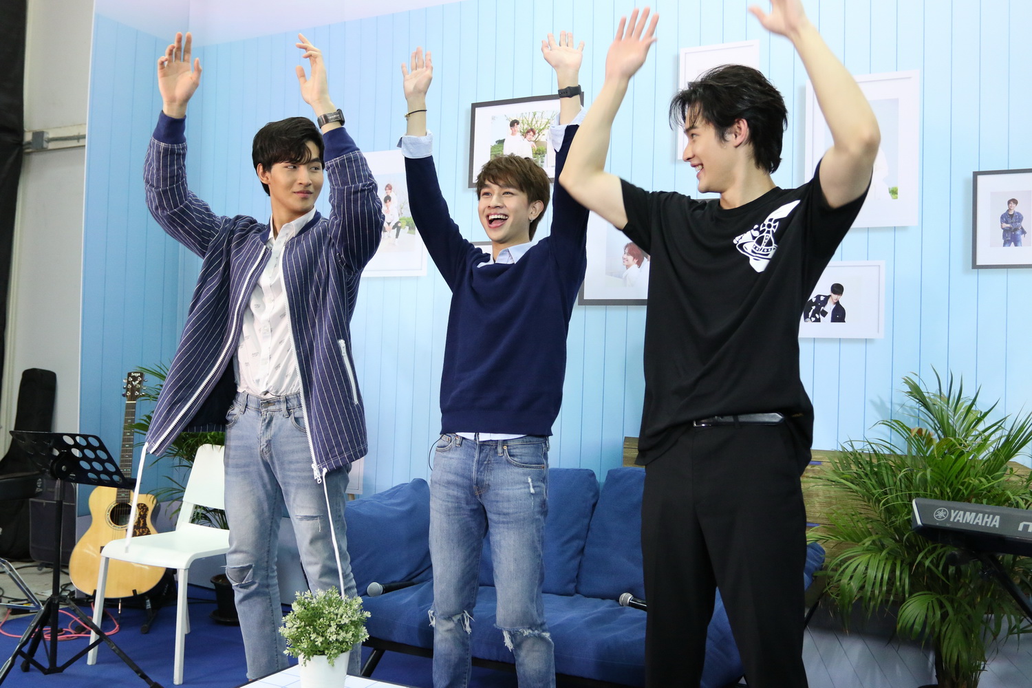 หากคิดว่าฟินแล้ว แต่ยังฟินได้อีกแบบนอนสต็อป!.. เพราะแค่เริ่มงานความหวานก็ถาโถม ด้วยการเปิดตัว ‘โอห์ม-ฟลุ้ค’ ด้วยเพลงคู่‘แค่ที่รัก (My Boo)’ (ศิลปินต้นฉบับ : ทรี.ทู.วัน) ซึ่งสื่อความหมายซึ้ง ๆ ถึง ‘My Blue’ ที่ละม้ายคล้ายชื่อเพลงภาษาอังกฤษ ‘My Boo’ ได้อย่างน่ารักสุด ๆ ก่อนที่ทั้งคู่จะทักทายและต้อนรับแฟนคลับทั้งไทยและเทศเข้าสู่แฟนมีตติ้งออนไลน์ครั้งแรกในชีวิต ที่มีบรรยากาศเป็นกันเองราวกับเปิดประตูต้อนรับทุกคนเข้าสู่บ้าน แถมยังโดดเด่นสะดุดตาด้วยกรอบรูปทั้งภาพเดี่ยว-ภาพคู่ของ ‘โอห์ม-ฟลุ้ค’.. ติดที่ฉากจนถูกแซวว่าเหมือนกำลังจะแต่งงาน จากนั้นก็มีคำถามๆขึ้นมาว่า ‘บ้านนี้ใครใหญ่?’ งานนี้คงต้องยกให้ ‘เจ้าแก้มก้อน’ โดยปริยาย เพราะ ‘พ่อหมี’ เค้ายอมให้เอารูปไว้ตำแหน่งบนสุดเลยจ้า!!