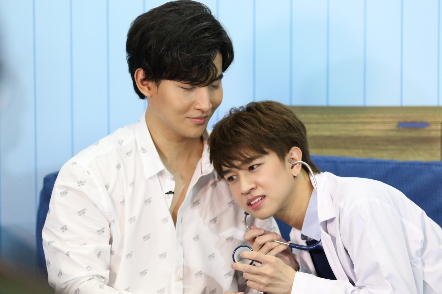 แล้วสนุกกันต่อกับช่วง ‘TikTok Dance Fever’ ซึ่งแฟน ๆ ที่กำลังดูไลฟ์สตรีมมิ่งอยู่จะได้รับหน้าที่เป็นผู้กำกับ รีเควสต์ให้ ‘โอห์ม-ฟลุ้ค’ ออกสเต็ปในเวอร์ชั่นต่าง ๆ ได้ตามใจชอบ ซึ่งการแดนซ์ในเวอร์ชั่นฮันนีมูนและเวอร์ชั่นออดอ้อนนั้นก็ทำเอาแฟนคลับแทบจะกลั้นเสียงกรี๊ดไว้ไม่อยู่!.. แล้วฟินกันต่อเนื่องไม่หยุด ด้วยเกม ‘ปั้นหุ่นทายคำ’ ที่ต้องมีคนหนึ่งถูกปิดตา แล้วอีกคนต้องจับคนที่ปิดตามาทำท่าตามคำใบ้ เพื่อให้ฝ่ายนั้นทายคำให้ถูก เพราะทุ่มเทเล่นเกมกันเต็มที่เลยต้องสกินชิพกันอย่างใกล้ชิดจนทายผิดทายถูก ผลแพ้-ชนะไม่สำคัญแต่บอกเลยว่าพบคนเสียอาการจ้า!.. แต่ที่ถูกใจแฟน ๆ เป็นที่สุดก็ต้องยกให้เกม ‘Heart Beat’ ที่ ‘โอห์ม-ฟลุ้ค’ ต้องสลับกันใส่เสื้อกาวน์เพื่อทำหน้าที่คุณหมอวัดอัตราการเต้นของหัวใจของอีกฝ่าย ใครหัวใจเต้นเร็วขึ้นมากกว่าก็จะเป็นผู้แพ้ ทั้งคู่เลยงัดทุกกลยุทธ์มาทำให้อีกฝ่ายใจเต้นเร็ว แต่ยิ่งดู คนที่ใจเต้นรัวที่สุดก็ไม่พ้นมายบลูนี่แหละ!