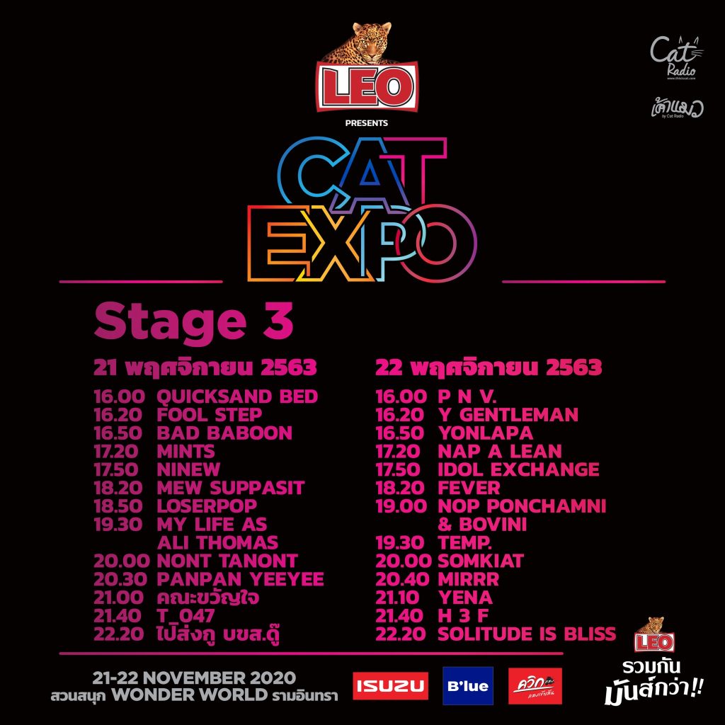 งานนี้ศิลปิน ครบรส คับคั่ง หนาแน่น พวกเขาพร้อมจะมาเติมพลังรวมกันมันส์กว่า เซอร์ไพร์ส แฟน ๆ ให้ได้ชาร์จพลังในตัวคุณ สนุกสนานโยก ปล่อยเสียงร้อง กรี๊ด ตามกัน ทั้งร่วมสัมผัสถึงบรรยากาศแบบใกล้ชิดกับศิลปินที่แฟน ๆ ชื่นชอบ และบรรยากาศในงานจะได้พบกับการออกบูทขายของจากเหล่าศิลปิน รวมถึงร้านค้า อาหารเครื่องดื่ม หลากหลาย สุดชิก สุดแนว ให้เลือกช้อป ชิม มาให้หาทานกันจุใจแบบจุก ๆ ใครมีบัตรแล้วเตรียมตัวมาพบความสนุกสนาน ทั้ง 2 วันเต็ม ๆ ในวันเสาร์ที่ 21 พฤศจิกายน – วันอาทิตย์ที่ 22 พฤศจิกายน 2563 นี้ สถานที่ สวนสนุก Wonder World รามอินทรา ประตูเปิดเวลา 15.00 น. คอนเสิร์ต LEO PRESENTS CAT EXPO 7 เรียกได้ว่าสาวกคนดนตรีไม่ควรพลาดอย่างเด็ดขาด!! หน่วยสร้างความสุขพร้อมเพื่อแฟนเพลงแน่นอนจร้า…