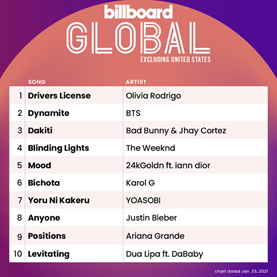 นอกจากนี้“driver’s license” ยังก้าวสู่อันดับ 1 บน MAJOR STREAMING SERVICES มียอดสตรีมรวมทั่วโลกสูงกว่า 107 ล้านกว่าบน TOTAL GLOBAL STREAMS และมีจำนวนผู้เข้าชม MV ทาง YouTube กว่า 50 ล้านวิว ยอดสตรีมแต่ละชาร์ตคือส่วนหนึ่งที่การันตีความสามารถของศิลปินวัย 17 ปี ยิ่งไปกว่านั้นเธอยังถูกสื่อระดับโลกจับตามอง และพูดถึงเธอว่า
