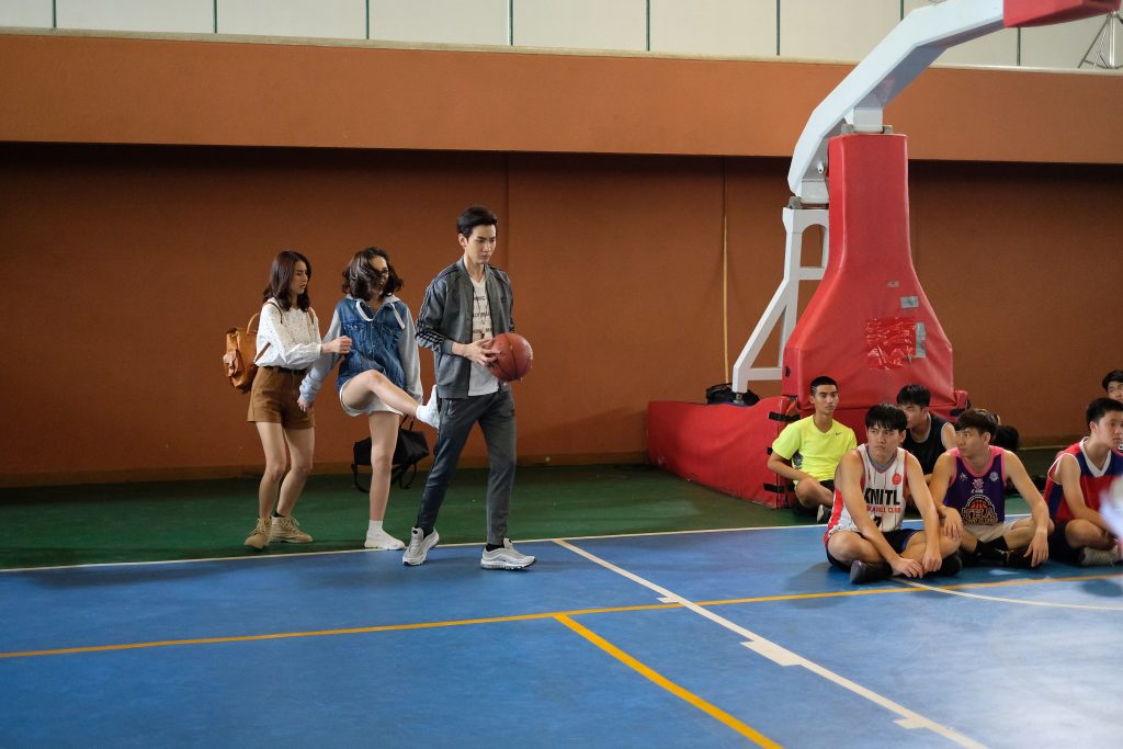 ฉากที่นำมาฝากวันนี้ ถ่ายทำที่สนามบาสของพระจอมเกล้าลาดกระบัง นักแสดงหลักและนักแสดงประกอบเรื่องพร้อมเข้าฉาก ผู้กำกับฯ แยกถ่ายเป็นสามคัท โดยถ่ายเจาะ “คิมม่อน” กับ “ฟอร์จูน” (กนกกาญจน์ จุลทอง) ที่แย่งลูกบาสดูสนิทสนม จากนั้นถ่ายมุมกว้างให้เห็น “ญดา” เดินเข้ามาเห็นซีนนี้กับ “ถุงแป้ง (ภัทรวดี เหลาสา)” จึงเกิดอาการหมั่นไส้หนักมาก เสร็จจากนั้น ก็ถึงคิวต้องถีบ งานนี้ ผู้กำกับเต๊ะ(ศตวรรษ เศรษฐกร) ต้องการให้ภาพดูสมจริง จึงสั่งให้ “ญดา” ถีบจริง ก่อนถ่ายทำซักซ้อมดูระยะห่าง ที่จะยกขาถีบไปที่ก้นของคิมม่อน ซึ่งหนุ่มคิมม่อนบอก ญดาให้เต็มที่ไปเลย งานนี้พอถึงคิวถ่ายจริง “ญดา” เลยจัดเต็ม ยกขาถีบขึ้นถีบไปที่คิมม่อนไปแบบจังๆ เลยจ้า