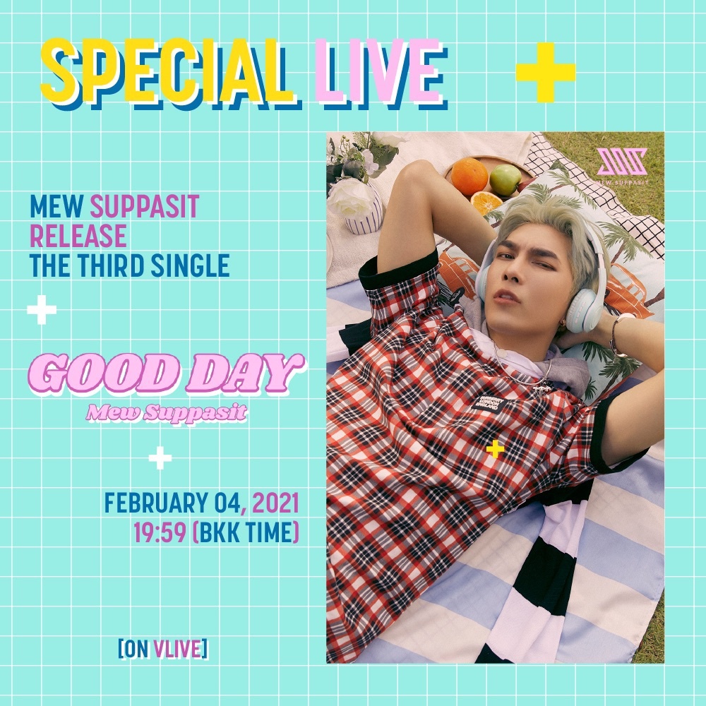 Mew Suppasit (มิว ศุภศิษฏ์) พร้อมแล้วกับการเปิดตัวเพลงซิงเกิ้ลที่ 3 Good Day(กู๊ด เดย์) โดยคราวนี้มาในรูปแบบการ Live สด ให้เข้ากับสถานการณ์การป้องกันการแพร่ระบาดโควิท-19 แต่ถึงแม้จะเป็นการ Live แต่ Mew Suppasit ก็ขอจัดเต็มเพื่อเอาใจแฟนคลับที่รอชมอยู่ทั่วโลก กับชื่องาน Special Live Mew Suppasit Release The Third Single + Good Day + (สเปเชียล ไลฟ์ มิว ศุภศิษฏ์ รีลีส เดอะ เติร์ด ซิงเกิ้ล + กู๊ด เดย์ +)