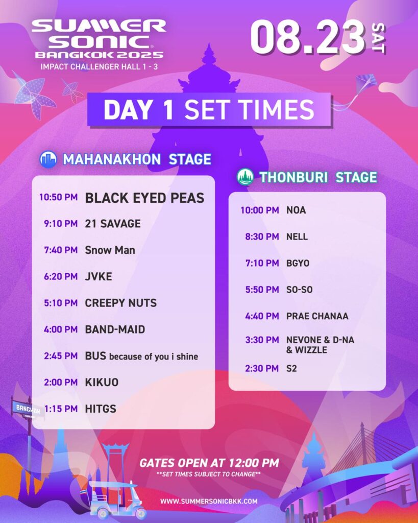 สำนักข่าวบริคอินโฟ – มหกรรมดนตรีระดับโลก SUMMER SONIC BANGKOK 2025 เตรียมจัดขึ้นในวันที่ 23-24 สิงหาคม 2568 ณ อิมแพ็ค ชาเลนเจอร์ ฮอลล์ 1-3 กรุงเทพฯ โดยงานปีนี้มาพร้อมไลน์อัปศิลปินที่หลากหลายจากทั่วโลก ทั้งศิลปินระดับอินเตอร์และศิลปินไทยชื่อดัง โดยจะมีการแสดงบน 2 เวทีหลักตลอด 2 วันเต็ม ตั้งแต่เที่ยงวันจนถึงเที่ยงคืน