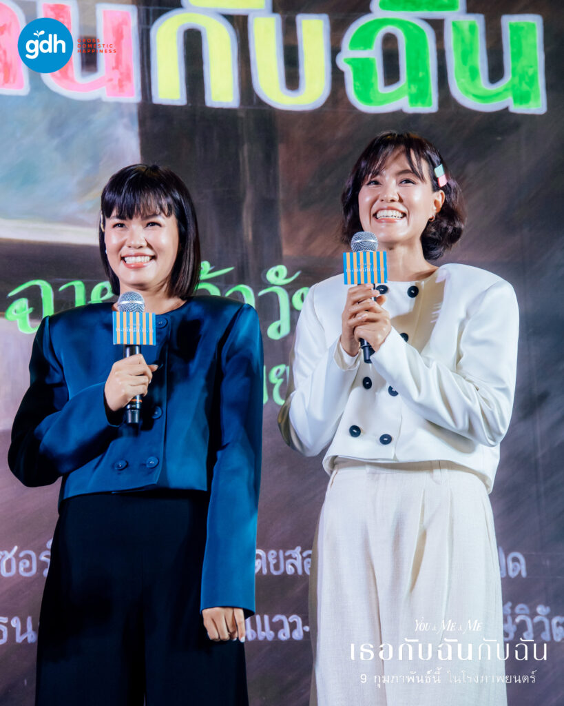จีดีเอช’ จัดรอบกาล่าภาพยนตร์ ‘เธอกับฉันกับฉัน’ เนรมิต ลานอินฟินิซิตี้ ศูนย์การค้าสยามพารากอน ให้เป็นงานวัด มีชิงช้าสวรรค์, ม้าหมุน, สายไหม, สอยดาว ให้ทุกคนได้มาร่วมสนุก ก่อนชมบรรยากาศบนเวที โดยได้พิธีกรสุดฮอต โบ ธนากร ชินกูล รับหน้าที่พูดคุยกับโปรดิวเซอร์ โต้ง บรรจง ปิสัญธนะกูล และสองผู้กำกับฝาแฝด วรรณแวว-แวววรรณ หงษ์วิวัฒน์ พร้อมพระเอก-นางเอก หน้าใหม่ที่เตรียมแจ้งเกิด ใบปอ ธิติยา จิระพรศิลป์ และ โทนี่ อันโทนี่ บุยเซอเรท์ จัดเต็มโชว์พิเศษ ร่วมแจมกับ สองนักร้องดัง ส้ม มารี และ บิวกิ้น พุฒิพงศ์ ที่มาโชว์ในเพลง ‘กันและกัน’ เพลงประกอบภาพยนตร์ ที่เรียกเสียงกรี๊ดจากผู้ชม ก่อนจะมาร่วมพูดคุยกับ ผู้กำกับ นักแสดงกันอีกครั้ง และนอกจากหนังเรื่องนี้จะมีเรื่องราวของความรักแล้ว ยังมีเรื่องครอบครัว ที่นักแสดงชื่อดังอย่าง กระแต ศุภักษร ไชยมงคล ที่ไม่ได้รับเล่นหนังมานาน แต่พอเห็นบทหนังเรื่องนี้ยังต้องรับเล่น