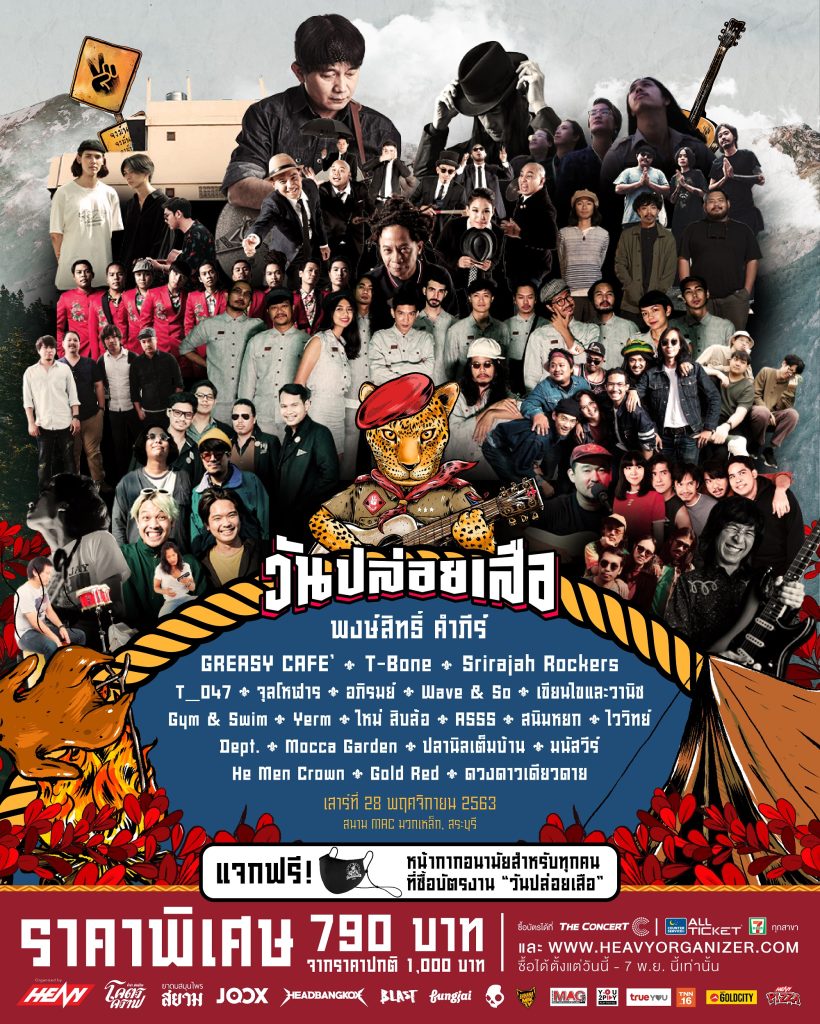“วันปล่อยเสือ” เทศกาลดนตรีที่จะพาคุณไปนอนกางเต้นท์ เล่นกลางป่า ที่บรรยากาศขับกล่อมไปด้วยเสียงเพลง จากบรรดาศิลปินตังจริงเรื่องดนตรีอย่าง ปู – พงษ์สิทธิ์ คำภีร์, กรีซซี่ คาเฟ่ (Greasy Café), ที-โบน (T-Bone), วงเขียนไขและวานิช, วงม็อคค่า การ์เด้น (Mocca Garden), วงศรีราชา ร็อกเกอร์ (Srirajah Rockers), วงที 047 (T_047), วงจุลโหฬาร, วงอภิรมย์, วงเวฟ แอนด์ โซ (Wave & So), วงยิม แอนด์ สวิม (Gym & Swim), วงเยิ้ม (Yerm), ใหม่ สิบล้อ, วงแอซซส์ (Asss), วงสนิมหยก, ไววิทย์, วงเดฟท์ (Dept.), วงปลานิลเต็มบ้าน, มนัสวีร์, วงฮี เม็น คราวน์ (He Men Crown), วงโกลด์ เรด (GOLD RED) และ ดวงดาว เดียวดาย ในวันเสาร์ที่ 28 พฤศจิกายน 2563 ที่จะถึงนี้ ตั้งแต่เวลาเที่ยงตรงเป็นต้นไป ณ สนาม MAC มวกเหล็ก สระบุรี บัตรผ่านเข้าร่วมงานกางเต้นท์ 1,000 บาท (แถมหน้ากากผ้า รุ่น Limited Edition) สามารถจับจองกันได้ที่เคาเตอร์ All Ticket ในร้านเซเว่น อีเลฟเว่น (7-11) ทุกสาขา หรือจับจองทางออนไลน์ผ่าน 3 เว็บไซต์นี้ ALLTICKET.COM, THECONCERT.COM และ HEAVYORGANIZER.COM