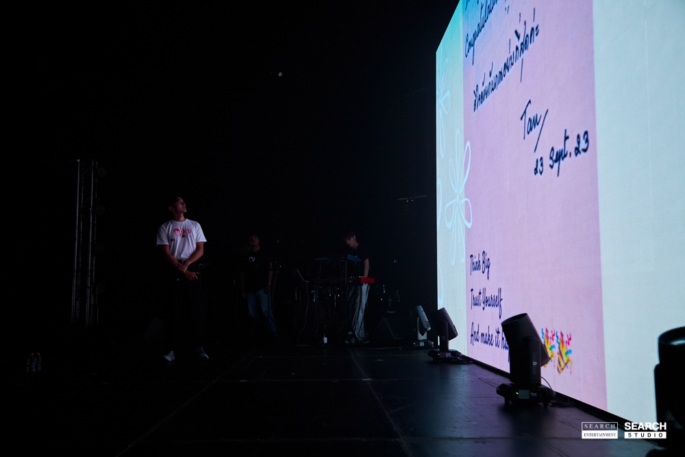 เปิดฉากความสนุกด้วยโชว์เพลงแรกด้วยเพลง ‘I JUST WANNA PEN FAN YOU DAI BOR’ ที่หนุ่มภณออกมาทั้งร้องและเต้น เรียกเสียงกรี๊ดได้สนั่นไลฟ์เฮ้าส์เลยทีเดียว จากนั้นพาไปรู้จักตัวตนด้านนักดนตรีหนุ่มสุดเท่ คว้ากีต้าร์โซโล่เพลง ‘ขอบใจเด้อ’ และเป่าคาถาให้ทุกคนมาหลงรักในเพลง ‘นะหน้าทอง’ ทำเอาแฟนคลับกรี้ดสลบกับความเท่ไม่มีขีดจำกัด