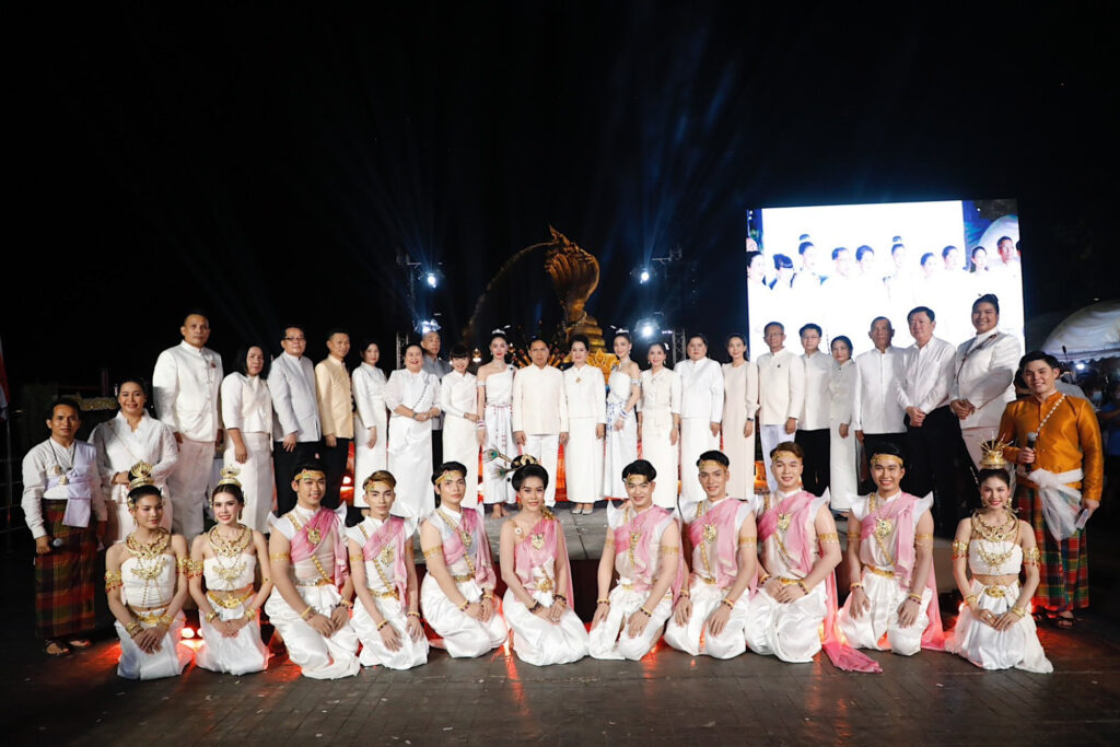 แต่ไฮไลท์ความงดงาม ที่สายตาทุกคู่ต่างจับจ้อง อยู่ที่ สองนักแสดงนำ จากละครฟอร์มใหญ่ “พนมนาคา” นำโดย “กรีน-อัษฎาพร สิริวัฒน์ธนกุล” ผู้รับบท “อนัญชลี” (ผู้มีฤกษ์เกิดปีงูใหญ่ เหมาะสมกับการเป็นคู่ครองของพญานาค) และ “ญิ๋งญิ๋ง-ศรุชา เพชรโรจน์” ผู้รับบท “โสวันนี” (นาคบริวาร) แต่งกายด้วยชุดรำสุดสง่างาม เรียบง่าย แต่ออร่าความสวย สุดเจิดจรัส นำขบวนร่ายรำบวงสรวง ถวาย “องค์ปู่ศรีสัตตนาคราช” โดยใช้เพลงรำจาก ละคร “พนมนาคา” ทำให้เพิ่มกลิ่นอายความมีมนต์ขลังอย่างลงตัว ทั้งนี้ ยังมีขบวนรำถวายของจังหวัดนครพนม เข้าร่วมฟ้อนศรีโคตรบูร และฟ้อนออนซอนนครพนม ซึ่งเป็นประเพณีการฟ้อนที่อ่อนช้อย งดงาม ตามด้วย พิธีขอขมากรรมที่เข้มขลังไปด้วยแรงศรัทธา และปิดท้ายงาน ด้วยภาพสุดประทับใจ กิจกรรมการบินโดรนแปลอักษร ในงานประเพณีไหลเรือไฟ จังหวัดนครพนม เรียกเสียงฮือฮา และแสงแฟลชได้ตลอดการแสดง จากนั้น แฟนละครจำนวนมาก ปักหลักร่วมชมละคร “พนมนาคา” กลางลานพญาศรีสัตตนาคราช ท่ามกลางบรรยากาศที่เต็มไปด้วยมนต์เสน่ห์แห่งความรัก ความศรัทธา