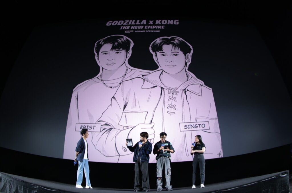 สำหรับความพิเศษของกิจกรรมครั้งนี้ นอกจากแฟนๆ จะได้ร่วมชมภาพยนตร์ Godzilla x Kong : The New Empire ด้วยกันแล้ว ยังถือเป็นอีเว้นท์คู่ครั้งแรกในรอบเกือบ 2 ปี ของสองหนุ่ม “คริส-สิงโต” โดยหลังชมภาพยนตร์จบทั้งสองคนยังได้มาร่วมพูดคุยและทำกิจกรรมกับแฟนๆ สร้างรอยยิ้ม และความประทับใจให้กับด้อม ‘ทีมพีรญา’ สมการรอคอย ซึ่งก่อนหน้านี้ก็ได้สร้างปรากฏการณ์ Sold Out ภายใน 2 ชั่วโมง ตั้งแต่เปิดขายบัตรชมภาพยนตร์รอบพิเศษเมื่อวันที่ 28 มี.ค. ที่ผ่านมา