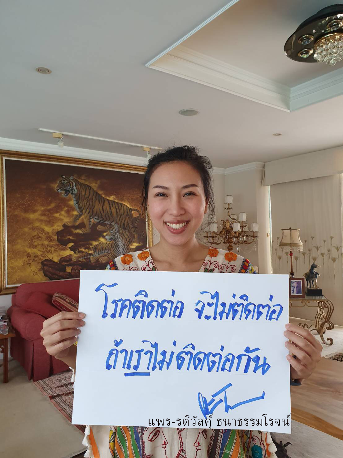บริษัท เจ เอส แอล โกลบอล มีเดีย จำกัด นำโดย แพร-รติวัลคุ์ ธนาธรรมโรจน์ ประธานเจ้าหน้าที่บริหาร เชิญชวนศิลปินดารา อาทิ แพนเค้ก-เขมนิจ จามิกรณ์ ,เคลลี่ ธนะพัฒน์ , น้องนาย-ชนุชตรา สุขสันต์ , ซี-ศิวัฒน์ โชติชัยชรินทร์, ไอซ์-ภาณุวัฒน์ เปรมมณีนันท์ ,ติ๊ก ชีโร่ , สุทธิพงษ์ วัฒนจัง หรือ ชมพู ฟรุตตี้ , ไก่-สมพล ปิยะพงศ์สิริ , เก่ง-อธิป เจริญชัยสกุลสุข , ถนอม-บุ๋มบิ๋ม สามโทน, ตี๋ ดอกสะเดา , ต๋อง ชวนชื่น-น้องแต๊งกิ้ว และ คิง ก่อนบ่าย ขานรับโครงการของโรงพยาบาลศิริราช ส่งต่อระยะห่างระหว่างกัน ด้วยการทำ Challenge เขียนข้อความ “โรคติดต่อ จะไม่ติดต่อ ถ้าเราไม่ติดต่อกัน” ลงในกระดาษ แล้วโพสต์ภาพ เพื่อเป็นการรณรงค์และยับยั้งการแพร่ระบาดของเชื้อไวรัส โควิด-19 พร้อมใส่แฮชแท็ก #alonetogether #เลิกติดโรคไม่ต่อ ส่งไปให้คนที่คุณรักอีก 10 คน ให้เขาได้รู้ว่าคุณรักเขาแค่ไหน #siriraj #ศิริราช ด้วยการเว้นระยะห่างในการเข้าสังคม (Social distancing)  และลดการติดต่อ ไม่ไปรวมกลุ่มกันในพื้นที่ที่มีคนมากๆ  หากจำเป็นต้องออกไปนอกบ้านให้ใส่หน้ากากอนามัยหรือหน้ากากผ้า กินร้อน ช้อนส่วนตัว ล้างมือบ่อยๆ เมื่อเราคนไทยร่วมด้วยช่วยกัน เชื่อตามคำแนะนำของบุคลากรทางการแพทย์ จำนวนของผู้ติดเชื้อก็จะลดลงแน่นอน