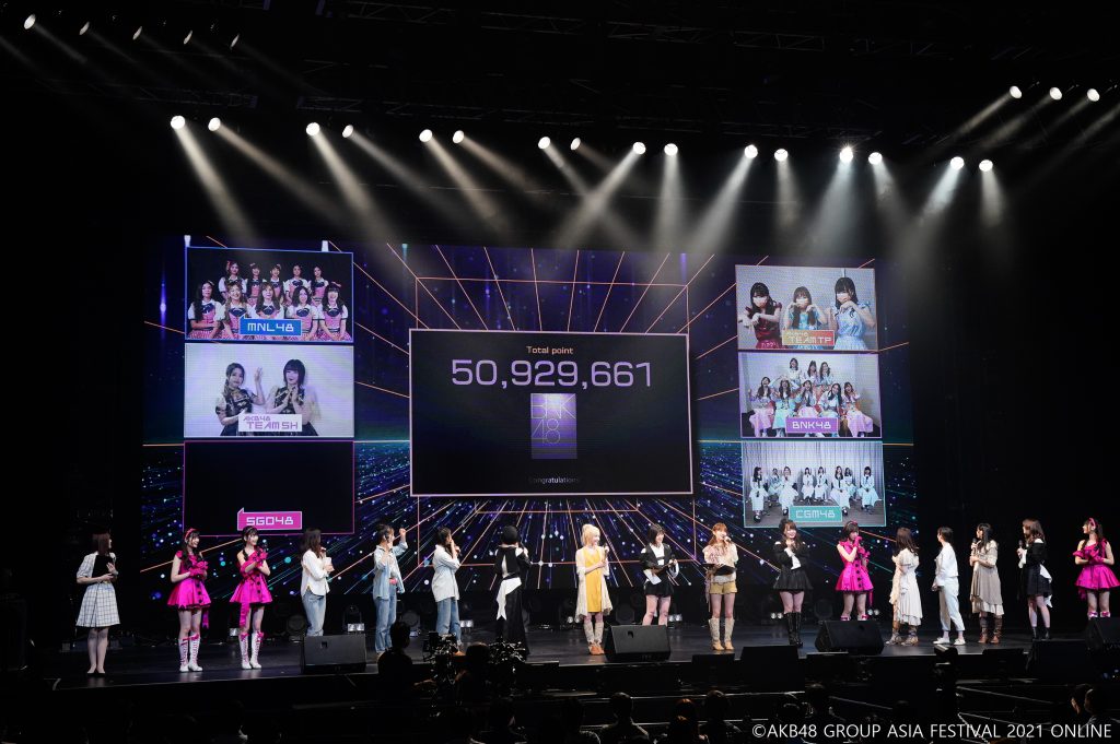จบไปแล้วแบบจุใจไปก้บคอนเสิร์ตกว่า 4 ชั่วโมงสำหรับผู้ที่มีบัตรคอนเสิร์ต “AKB48 ASIA FESTIVAL 2021 ONLINE” โดยเป็นการโชว์ของสาว 48Group นำโดยรุ่นพี่ AKB48 ที่มาแสดงพร้อมวงน้องสาวในต่างประเทศอีก 7 วง ทั้ง JKT48 , BNK48 , MNL48 , AKB48 Team SH , AKB48 Team TP และ SGO48 นอกจากจะได้รับชมความน่ารักและการแสดงสุดฟินจากสาวๆวงไอดอลแล้ว บนเวทีงาน AKB48 ASIA FESTIVAL 2021 ONLINE ยังได้มีประกาศผลคะแนน TikTok Campaign โดยเป็นการวัดคะแนนโหวตจากแฟนๆ ซึ่งผลอันดับ 1 ได้แก่ วงไอดอล “BNK48” จากประเทศไทยได้รับคะแนนสูงสุดถึง 50,929,661 pts ในขณะที่อันดับ 2 เป็นของวงจากประเทศไทยเช่นกัน “CGM48” และอันดับ 3 วงน้องสาวจากอินโดนีเซีย JKT48 นอกจากนี้ยังได้มีการประกาศการจัดงานในครั้งต่อไปโดยจะกลับมาจัดที่กรุงเทพฯ ประเทศไทยอีกครั้ง หลังจากได้มีการจัดครั้งแรกในประเทศไทยมาแล้วในปี 2019 มาแล้ว โดย “Okada Nana” ได้กล่าวว่า “ในปีที่แล้ว AKB48 สามารถผ่านปีที่ 15 มาได้ และในปีที่ 16 นี้ก็อยากจะมุ่งไปสู่เวทีใหม่ๆ เพราะฉะนั้นโปรดเป็นกำลังใจให้ด้วยนะคะ ในปีหน้าก็ได้ถูกกำหนดมาแล้วว่าจะไปจัดที่กรุงเทพฯทุกคนก็มาสนุกกันนะคะ”