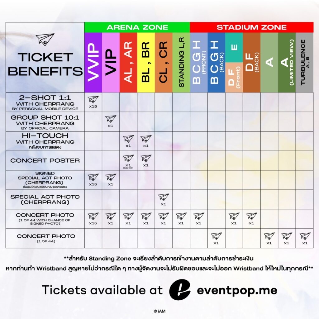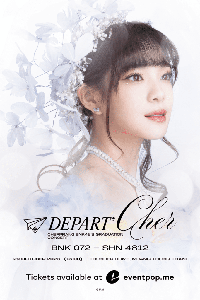Depart’Cher Cherprang BNK48’s Graduation Concert จะเปิดจำหน่ายบัตรวันที่ 7 ตุลาคมนี้ ตั้งแต่เวลา 10.00น.เป็นต้นไป ผ่านช่องทาง www.eventpop.me ราคาเริ่มต้น 720 / 1,200 / 1,800 / 2,000 / 2,200 / 2,800 / 3,000 / 3,200 / 3,800 / 4,800 / 6,500 และ VVIP Zone 150,000 (สำหรับการเข้าชมได้สูงสุด 15 คนต่อโซน)