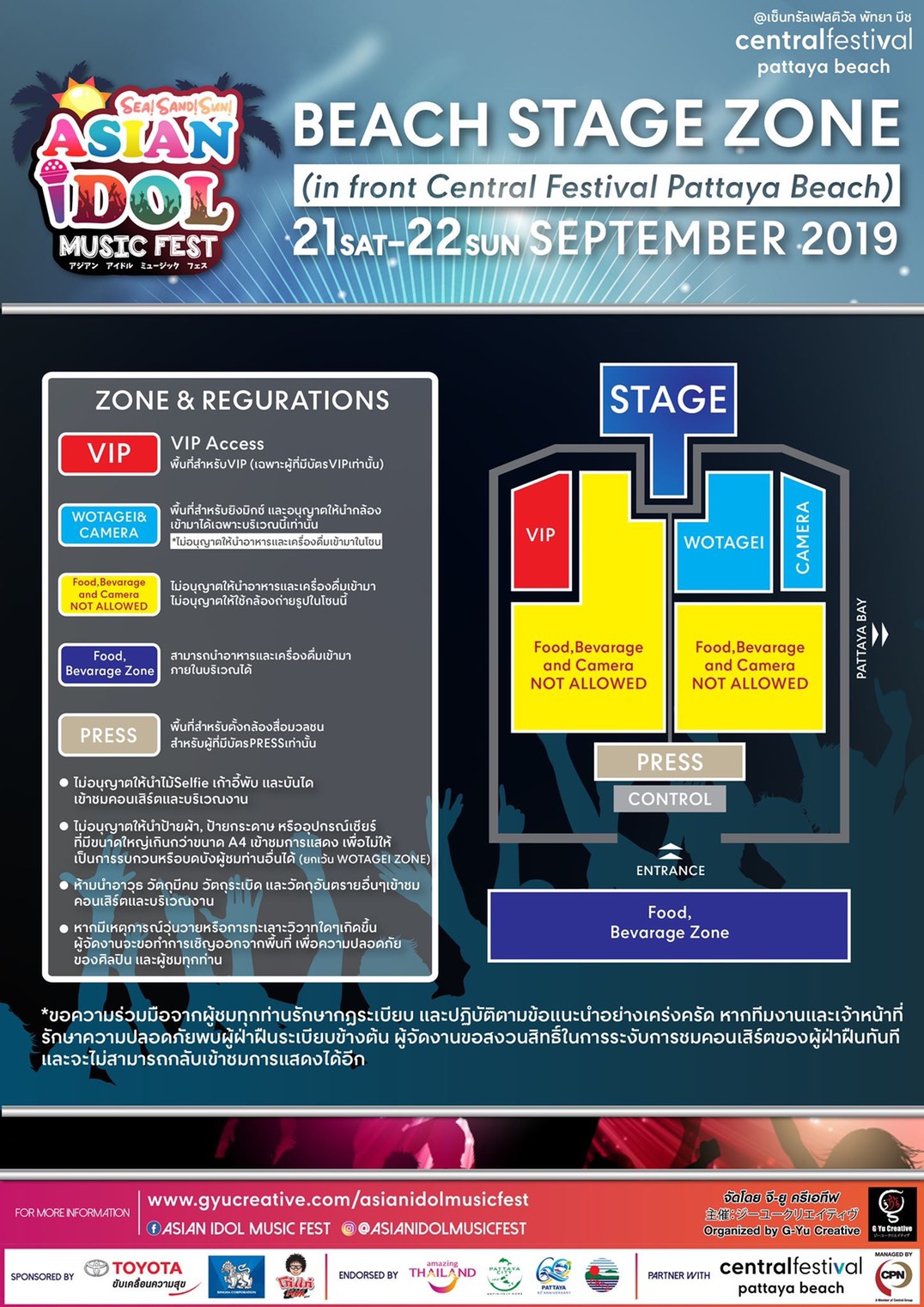 งานนี้ได้รับความร่วมมือจาก บริษัท เซ็นทรัลพัฒนา จำกัด (มหาชน) หรือ ซีพีเอ็น ผู้บริหารศูนย์การค้าเซ็นทรัลเฟสติวัล พัทยา บีช ร่วมกับ บริษัท จียู ครีเอทีฟ จำกัด ผู้นำในด้านการสร้างสรรค์ Japan Event ของเมืองไทย พร้อมด้วยเมืองพัทยา, สมาคมนักธุรกิจและท่องเที่ยวเมืองพัทยา, การท่องเที่ยวแห่งประเทศไทย สำนักงานพัทยา, บริษัท โตโยต้า มอเตอร์ ประเทศไทย, บริษัท บุญรอดเทรดดิ้ง จำกัด และบริษัท โรงงานแม่รวย จำกัด (โก๋แก่) จับมือกันสร้างปรากฏการณ์ครั้งยิ่งใหญ่ระดับเอเชีย กับการรวมตัวของเหล่าไอดอลชื่อดังในเอเชียที่มารวมตัวกันมากที่สุด ในงาน “Asian Idol Music Fest” โดยรวบรวมเหล่าบรรดาไอดอลตัวแทนจาก 5 ประเทศ ทั้ง ญี่ปุ่น อินโดนีเซีย พม่า และ ฮ่องกง โดยมี ประเทศไทย เป็นเจ้าบ้าน เตรียมขนความสุข ความสนุก ความน่ารักสุดคิวบ์ มามอบให้กับแฟนคลับชาวไทยบนชายหาดพัทยา!!!
