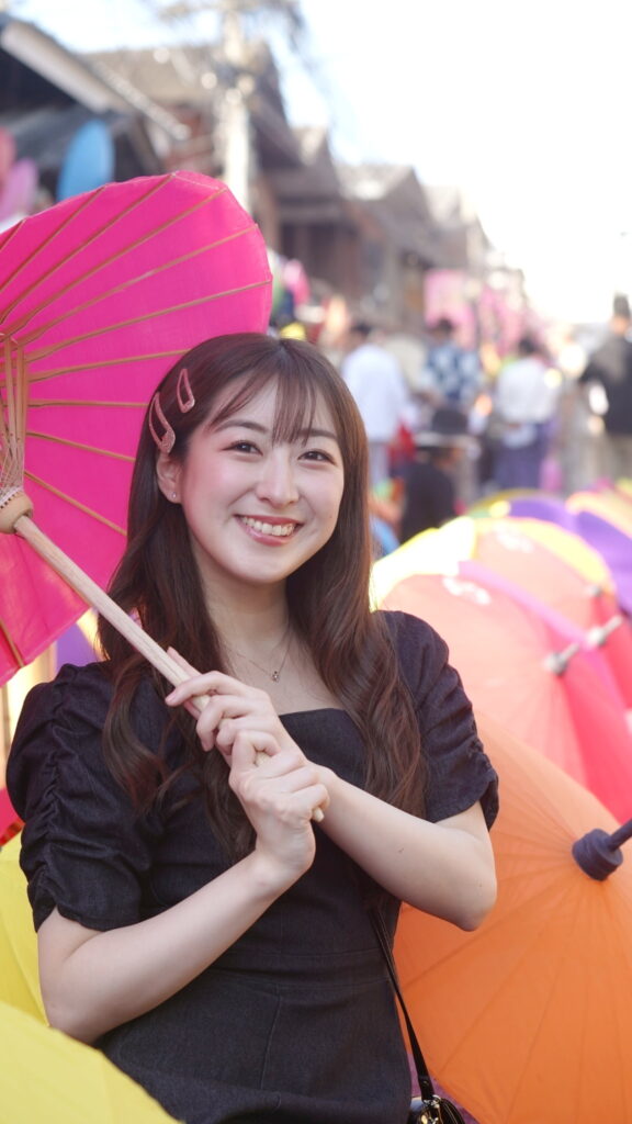รินะ CGM48 ไอดอลสาวสายเลือดญี่ปุ่นที่ย้ายถิ่นฐานมาเป็นไอดอลเมืองเชียงใหม่ เผยว่า “วัฒนธรรมเชียงใหม่และญี่ปุ่นมีความใกล้เคียงกันอยู่หลายอย่าง อาทิ ร่มที่ตนได้มาเพ้นท์ในงานนี้ก็คล้ายกับร่มญี่ปุ่นโบราณ ที่พอได้จับพู่กันวาดแล้วก็ทำให้คิดถึงบ้านที่ญี่ปุ่นไม่น้อย”