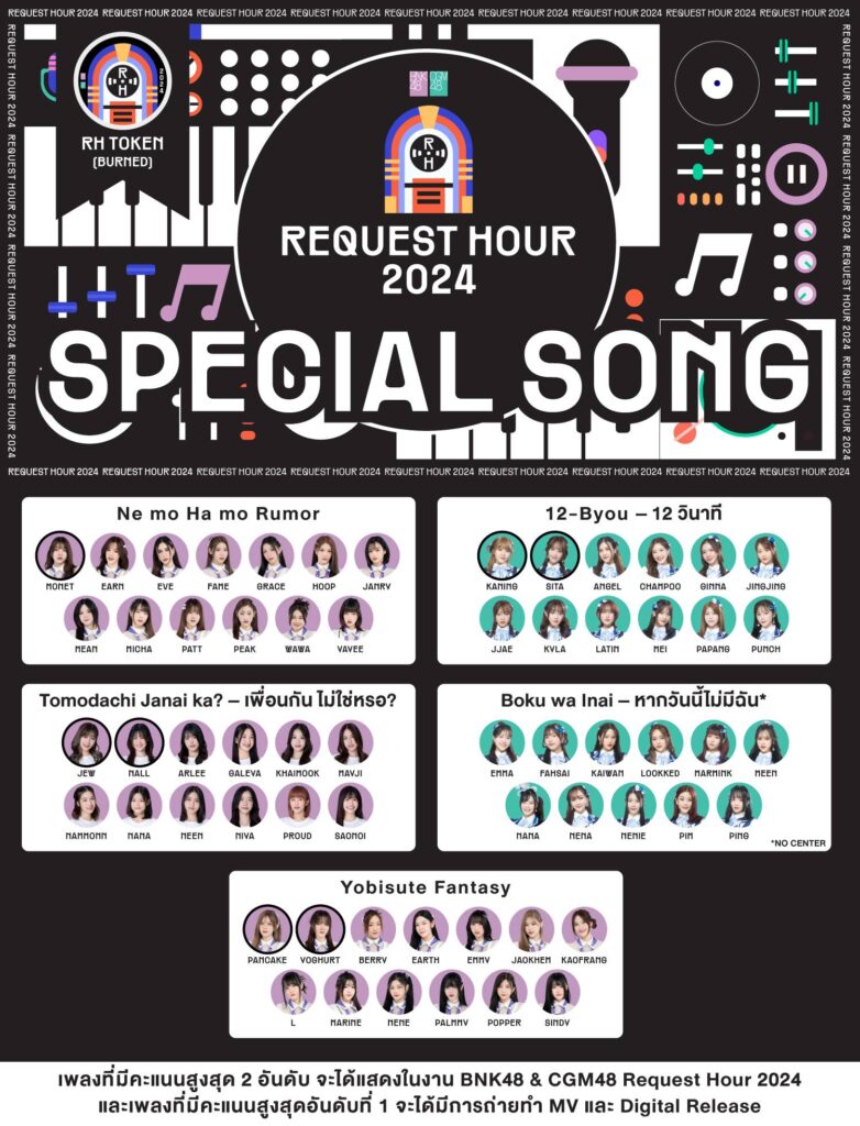 และในปีนี้ยังมีอีกหนึ่งความพิเศษกับ Special Song โดย 2 อันดับจะได้ขึ้นแสดง และอันดับที่ 1 จะถูกทำเป็น MV และเป็นอีกหนึ่งซิงเกิ้ลของวงนั้นอีกด้วย โดยสีสรรในส่วนของ Special Song เรียกว่าดุเดือดเลยทีเดียวสำหรับผลด่วนอันดับที่ 1 และอันดับที่ 2 ระหว่าง CGM48 ในเพลง “Boku No was Inai” – หากวันนี้ไม่มีฉัน” อันดับ 1 และอันดับ 2 BNK48 ในเพลง “Ne Mo Ha mo Rumor”