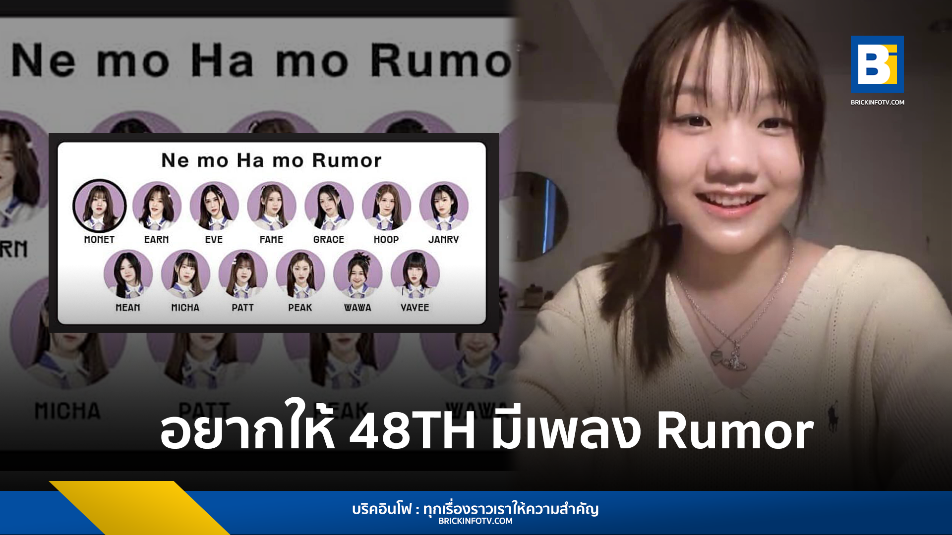 “หนูพูดจริง ๆ เลยว่าถ้า Rumor ได้ MV หนูจะไม่ขออะไรที่มันหนักจากทุกคนอีกแล้วจริง ๆ คือไม่ว่าในอนาคตจะมีใครเอาอะไรมาเสนอหนูก็ตาม หนูก็ยังอยากได้ Rumor ที่สุดอยู่ดี มันเป็นสิ่งที่หนูอยากเห็นแล้วก็อยากได้ แล้วก็เชื่อว่าถ้ามีมันจะต้องดีกับทั้ง 48TH แน่นอน มันเป็นสิ่งที่เป็นอย่างนั้นมาตลอด แล้วก็หนูไม่อยากได้อะไรไปมากกว่านี้แล้ว แล้วก็อาจจะฟังดูเข้าข้างตัวเอง หรือมาจากฝั่งหนูมากไปหน่อยนะคะ แล้วถ้าวันนึงหนูไม่ได้อยู่ตรงนี้แล้ว หนูมองย้อนกลับมาว่าหนูเกือบจะได้เป็นเซ็นเตอร์ Rumor แล้ว แต่ว่าสุดท้ายมันก็ไม่มีหนูก็คงจะถือว่าตัวเองไม่ประสบความสำเร็จในตรงนี้ ในการเต้น การร้อง ไม่ใช่แค่การเป็นไอดอลทุกคน หนูก็คงถือว่าตัวเองหนูไม่ประสบความสำเร็จในตรงนี้จริง ๆ เพราะว่า