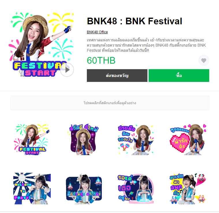 สำหรับโอตะคนไหนที่ ยังไม่มีสติ๊กเกอร์ไลน์ใช้ เอาไว้พูดคุยกับเพื่อนๆ วันนี้ทีมงานได้รวบรวม “สติ๊กเกอร์ไลน์” ของวงไอดอลแต่ละวงใน Line Store อาทิ วง BNK48 , FEVER , SWEAT16 , Daisy Daisy มาฝากกันค่ะ สำหรับใครชื่นชอบวงไหน เข้าไปกดซื้อกันได้เลยที่ https://store.line.me/home/th
