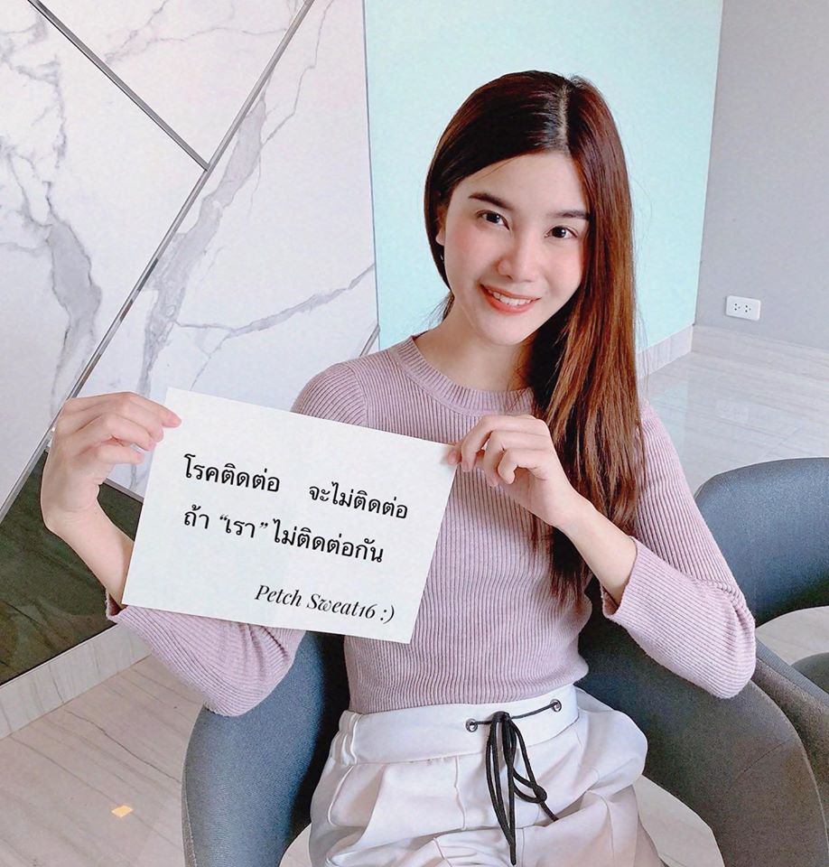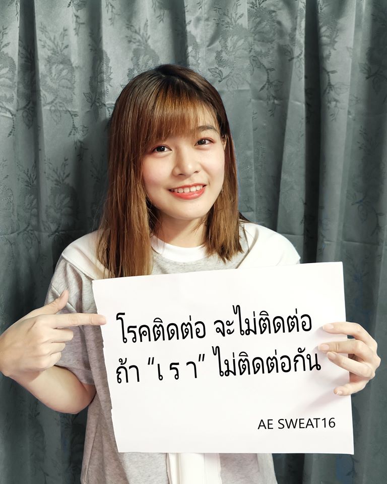 น่ารักเลยทีเดียวสำหรับสาวๆ วงไอดอลเกิร์ลกรุ๊ปวง SWEAT16 (สเวทซิกซ์ทีน!) ค่าย โิยชิโมโต้ เอ็นเทอร์เทนเมนต์ (ไทยแลนด์) หลังจากที่ทาง “ศิริราช” ได้จัดกิจกรรมเชิญชวนคนไทยร่วมตระหนักถึงระยะห่างที่เราควรมีให้กัน และเข้าใจถึง “การเว้นระยะห่างทางสังคม” หรือ Social Distancing เพื่อการลดการแพร่กระจายของ COVID-19 โดยการให้ร่วมเขียนข้อความ “โรคติดต่อ จะไม่ติดต่อ ถ้าเราไม่ติดต่อกัน” ลงในกระดาษ โพสต์ลงโซเชียลพร้อมแท็กบุคคลที่คุณรัก และติด #alonetogether #เลิกติดโรคไม่ต่อ เพื่อส่งต่อให้ตระหนักถึงระยะห่างระหว่างกัน