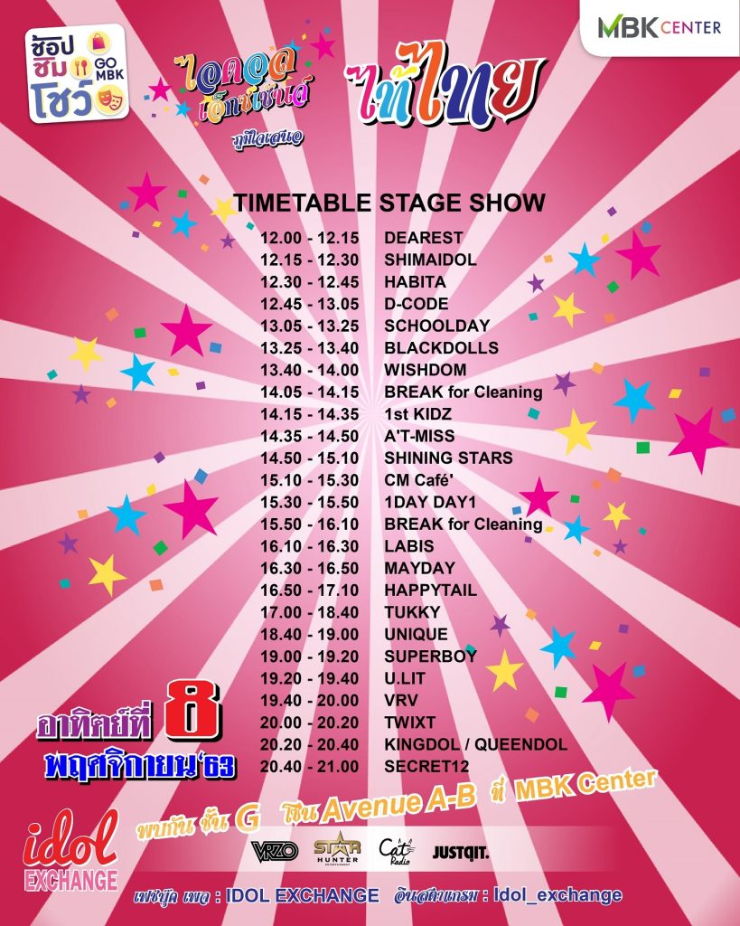 กลับมาอีกครั้งกับงาน Idol Exchange ประจำเดือน พฤษจิกายน งานที่รวมศิลปินไอดอลไทยไว้มากขึ้น นำโดย พิธีกรสาวอารมณ์ดี ตุ๊กกี้ ชิงร้อยชิงล้าน พร้อมด้วยศิลปินลูกทุ่งหัวใจไทยชาวสวีเดน โจนัส แอนเดอร์สัน นำขบวนม่วนซื่นในคอนเสิร์ต Idol Exchangeไท้ไทย จัดโดย ศูนย์การค้าเอ็ม บี เค เซ็นเตอร์ ร่วมกับidol Exchange ระหว่างวันที่ 6-8 พฤศจิกายน 2563 ณ ชั้น G ลานกิจกรรมเอ็ม บี เค อเวนิว โซน A,Bตั้งแต่เวลา 12.30 – 21.00 น. ร่วมด้วยทัพศิลปินและไอดอลขวัญใจวัยทีนไว้แน่นเวที อาทิ หนุ่ม ๆ บอยแบนด์สุดฮอต บาส-คิมม่อน-คอปเตอร์ แห่งวง เอสบีไฟฟ์ (SBFIVE) และ ซูเปอร์บอย (SUPERBOY) จากค่าย Star Hunter Entertainment ไข่มุก CNY ถังเบียร์ แชมป์ AF 10 และผู้บริหารค่ายเพลง Sweet Sound Entertainment นำทีมศิลปินในค่าย ชูก้าปิ้ว (Sugarpiu) พร้อมด้วยวงTwixt (ทวิกซ์) ลาบิส (Labis)U.lit (ยู-ลิต)และ อีกมากมาย
