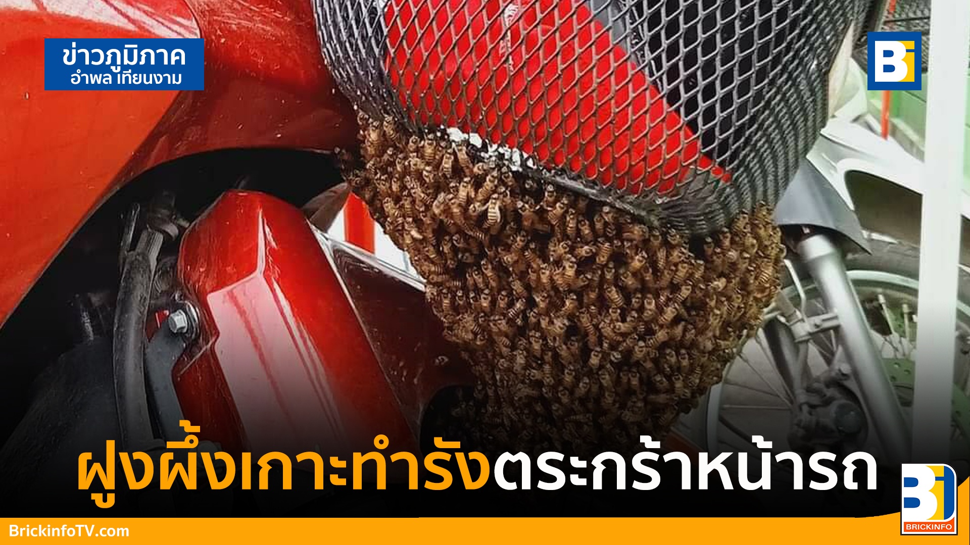 ฝูงผึ้งมิ้มบินมาเกาะที่ตะกร้าหน้ารถจักยานยนต์ของญาติผู้ป่วยที่มาเยี่ยมญาติ เจ้าหน้าที่รักษาความปลอดภัยต้องช่วยเตือนเกรงว่าจะเกิดอันตราย