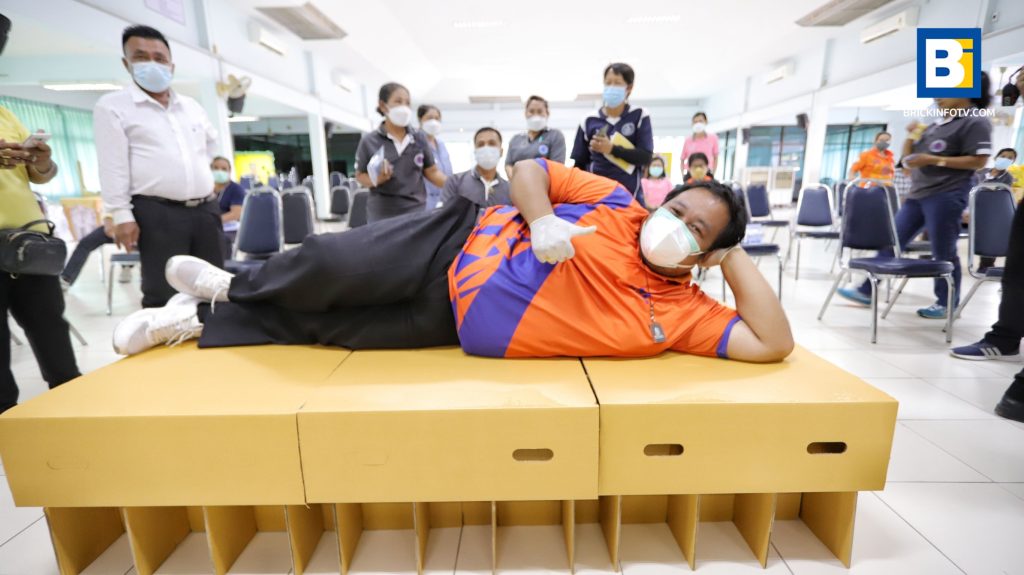 เมื่อเวลา 14.00 น. วันที่ 20 ก.ค.2564 ที่หอประชุมอำเภอหนองเสือ จังหวัดปทุมธานี นายสมชาย ตรีณาวงษ์ นายอำเภอหนองเสือ พร้อม นายพิษณุ พลธี สส.เขต.6 พรรคภูมิใจไทย นายอักษร น้อยสว่าง นายกอบต.บึงชำอ้อ ร่วมรับมอบ เตียงกระดาษ และร่วมประกอบเตียงกระดาษจำนวน 150 ชุดพร้อมหมอนโดยมีการทดลองให้ คนน้ำหนัก 160 กิโลกรัมขึ้นไปนอน มีความมั่นคงแข็งแรงดีมาก มอบให้ศูนย์ดูแล COVID-19 ชุมชน (Community isolation) ในพื้นที่ อำเภอหนองเสือ โดยมี นายชูชาติ เที่ยงธรรม ผู้อำนวยการโรงเรียนสามโคก อบจ.ปทุมธานี บจก.คอร์ติน่า เทรดดิ้ง (บางคูวัด) และ บจก.ซิ้นเค้นเท็กซ์ พร้อมบริษัทในเครือ ร่วมบริจาค