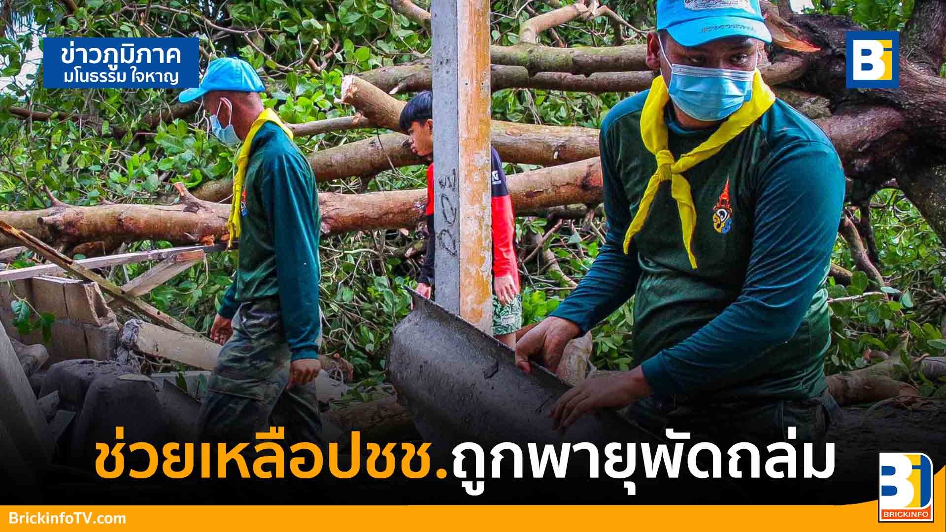 ทหารจิตอาสา เข้าดำเนินการรื้อถอนและขนย้ายสิ่งของที่ได้รับความเสียหายจากผลกระทบจากพายุลมกระโชกแรงในพื้นที่ อ.เหนือคลอง จ.กระบี่