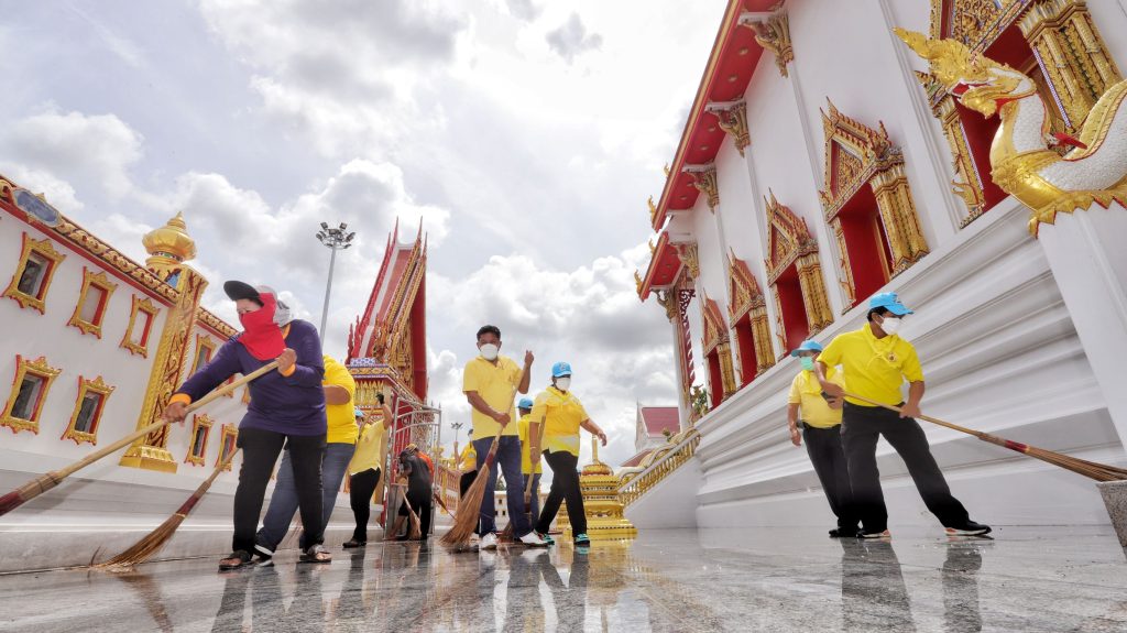 นอภ.เมืองปทุมฯ นำจิตอาสาพัฒนาศาสนสถาน ถวายเป็นพระราชกุศล พระบรมราชชนนีพันปีหลวง เนื่องในวันแม่แห่งชาติ
