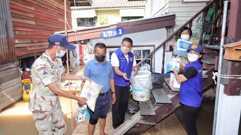 นายอำเภอเมืองปทุมธานี ลุยน้ำท่วม ตรวจเยี่ยม ให้กำลังใจประชาชนที่อาศัยบริเวณริมตลิ่ง