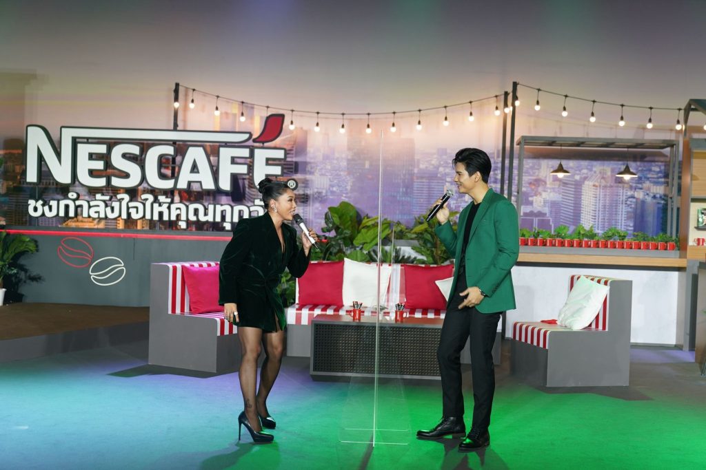 บรรยากาศเนสกาแฟ เดย์ ปีนี้ยิ่งใหญ่ไม่แพ้ปีก่อน ๆ กับการรวมตัวดาราศิลปินพรีเซนเตอร์ในครอบครัวเนสกาแฟทุกคน ที่มาร่วมชงกำลังใจให้คนไทยทุกคนผ่านกาแฟแก้วโปรดใน “มหกรรมชงกำลังใจให้คุณทุกวัน” Live โดยมีคนชมสดจากทั้งในและต่างประเทศ ประเดิมด้วย ณเดชน์ ควงคู่ ญาญ่า ที่มาบอกเล่าการเริ่มต้นวันใหม่ด้วยเนสกาแฟ หอม ๆ รสชาติกลมกล่อม ก็เปรียบเสมือนการส่งกำลังใจดี ๆ ถึงคนไทย ผ่านเนสกาแฟในทุก ๆ แก้ว พร้อมร้องเพลง “ดวงจันทร์กลางวัน” แทนความห่วงใยและความคิดถึงผ่านคลิปวิดีโอ นอกจากนี้ยังมีการร้องคู่สดครั้งแรกของ ไมค์ และ ดา ที่มาชงกำลังใจ แบบเข้ม ๆ เต็มเหนี่ยวให้คนไทยทุกคนในเพลง “สู้เต็มเหนี่ยว” พร้อมเล่นเกมแจกของรางวัลและมินิคอนเสิร์ตจากเหล่าพรีเซนเตอร์ที่สร้างรอยยิ้มและเรียกเสียงหัวเราะจากผู้ชมสนั่นจอ และเซอร์ไพรส์ส่งท้ายกับการรวมตัวของครอบครัวเนสกาแฟมามอบความสุขผ่านเพลง “จันทร์ อังคาร พุธ พฤหัสฯ ศุกร์ เสาร์ อาทิตย์” เหมือนกับเนสกาแฟที่สามารถชงกำลังใจให้กันได้ทุกวัน