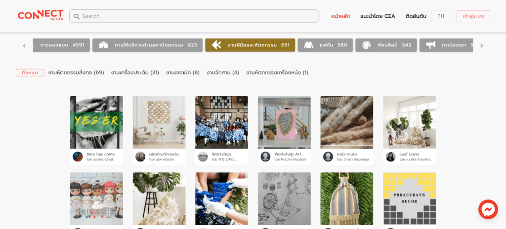เว็บไซต์ connect.cea.or.th เปิดรับผลงานจากนักสร้างสรรค์ในหลากหลายสาขาวิชากว่า 15 สาขา อาทิ ผลงานออกแบบ ผลงานสถาปัตยกรรม ผลงานด้านการฝีมือและหัตถกรรม ผลงานด้านแฟชั่น ผลงานด้านทัศนศิลป์ ผลงานด้านการโฆษณา ผลงานด้านอาหารไทย ผลงานด้านการท่องเที่ยวเชิงวัฒนธรรม ผลงานด้านภาพยนตร์ ผลงานด้านการพิมพ์ ผลงานด้านซอฟต์แวร์ ผลงานด้านดนตรี ผลงานด้านการแพร่ภาพและกระจายเสียง ผลงานด้านศิลปะการแสดง และผลงานด้านการแพทย์แผนไทย โดยปัจจุบัน มีนักสร้างสรรค์เข้าร่วมลงผลงานแล้วเกือบ 9,000 ผลงาน สามารถรับชมผลงานได้ที่เว็บไซต์ https://bit.ly/3ByxkEP หรือทาง Facebook: https://bit.ly/3lCOPy9