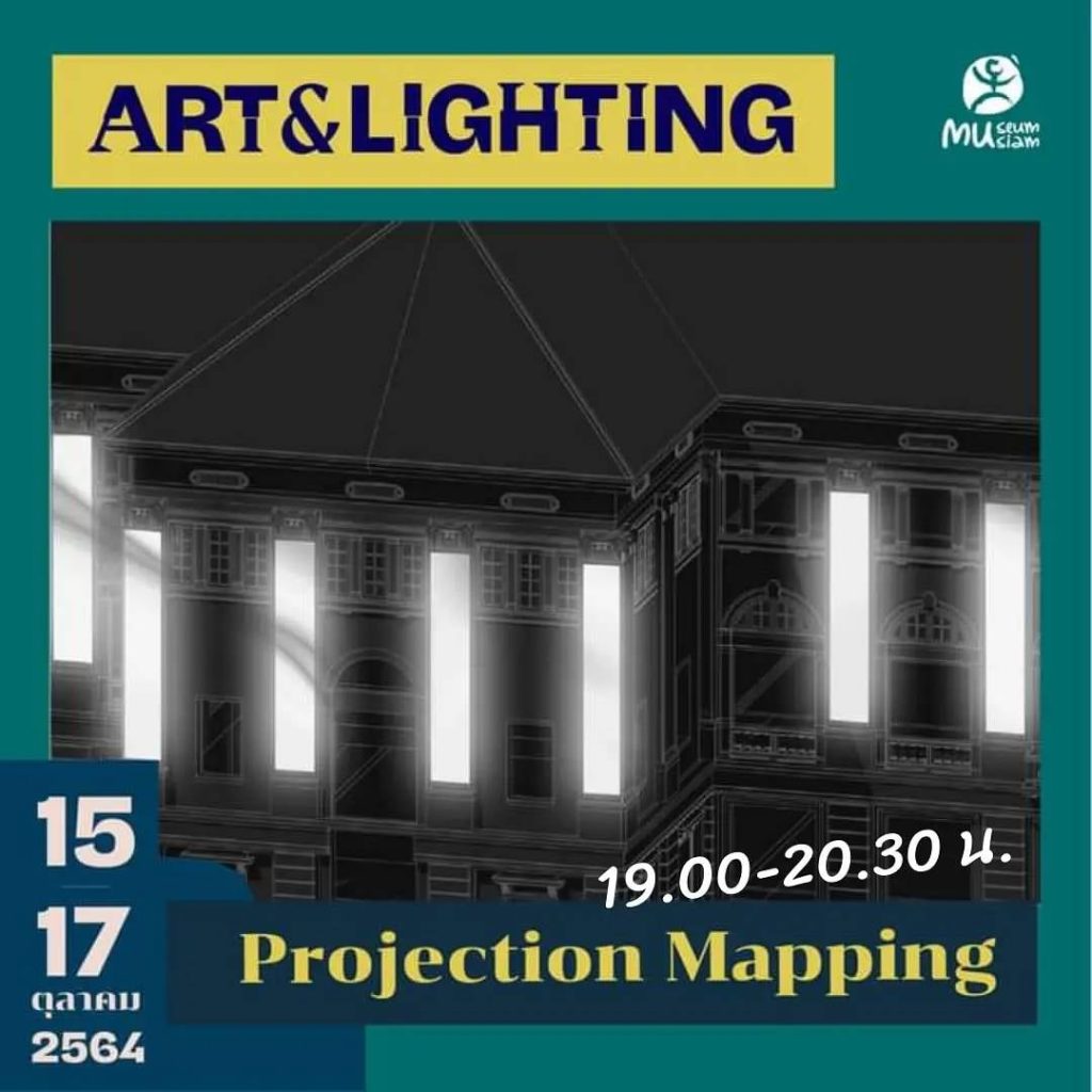 - Project Mapping ที่ครั้งนี้ เป็นการฉายแสงจากโปรเจคเตอร์ถึง 3 ตัว ลงบนผนังของอาคารมิวเซียมสยามที่มีอายุมากกว่าหนึ่งทศวรรษ เผยให้เห็นถึง ‘ลายเส้น’ ที่เป็นเค้าโครงของตึกหรือลวดลายกรอบหน้าต่าง และ กรอบประตูให้เห็นอย่างเด่นชัด นับเป็นการสะท้อนให้เห็นถึงความสำคัญกับสถาปัตยกรรมของ ‘ตึกเก่า’ ได้อย่างลงตัว โดยที่นักท่องเที่ยวสามารถรับชมได้ในหลายทิศทาง ทั้งจากประตูทางเข้าด้านหน้า และลานสนามหญ้า