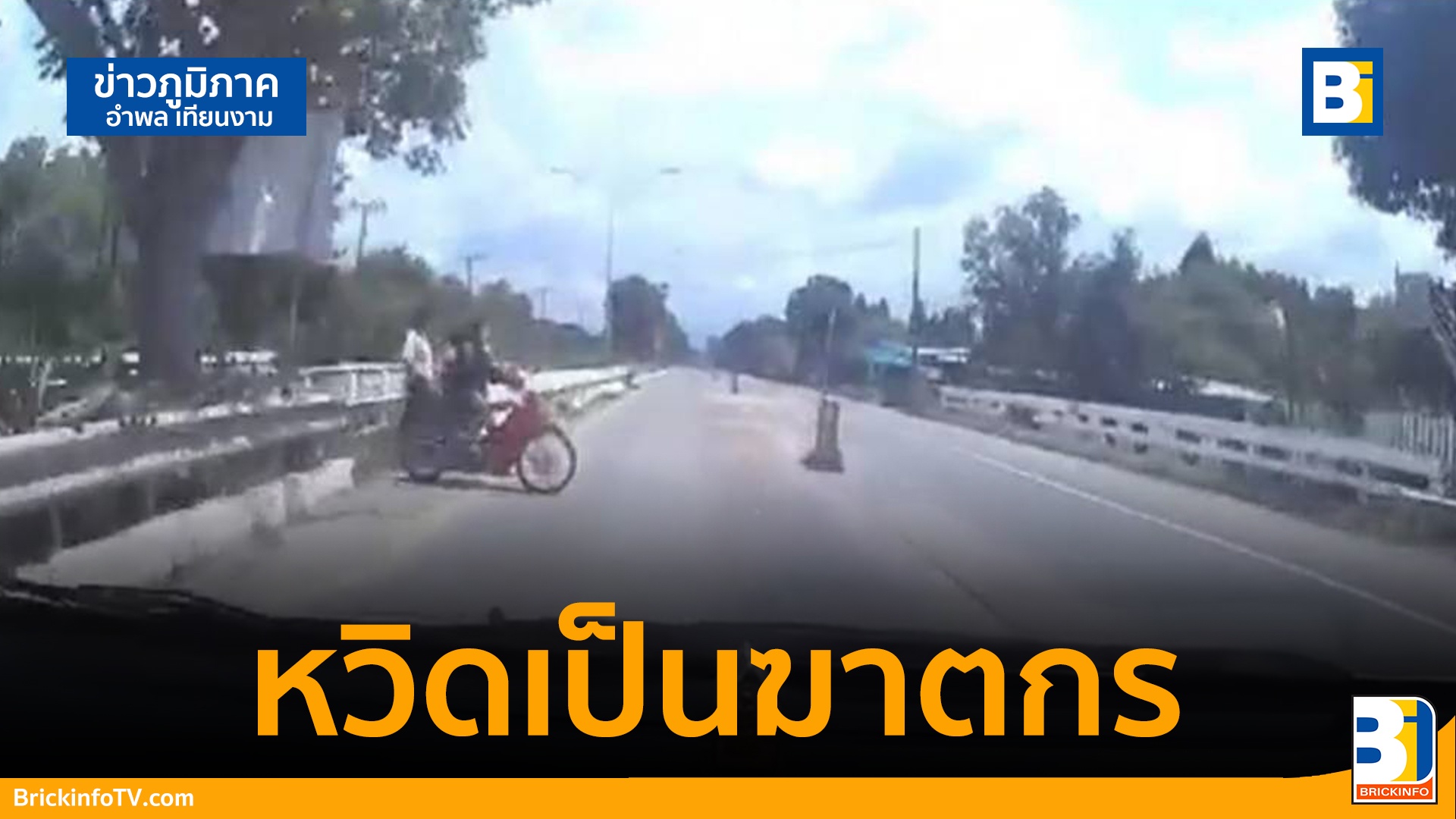 สาว ปภ. ขับรถมาเรื่อยๆจู่มอไซร์ซ้อน 3 ข้ามเกาะกลางตัดหน้าอย่างจังชนเต็มๆ แต่โชคดีไม่มีใครเสียชีวิตแต่หวิดเป็นฆาตกรไม่รู้ตัว