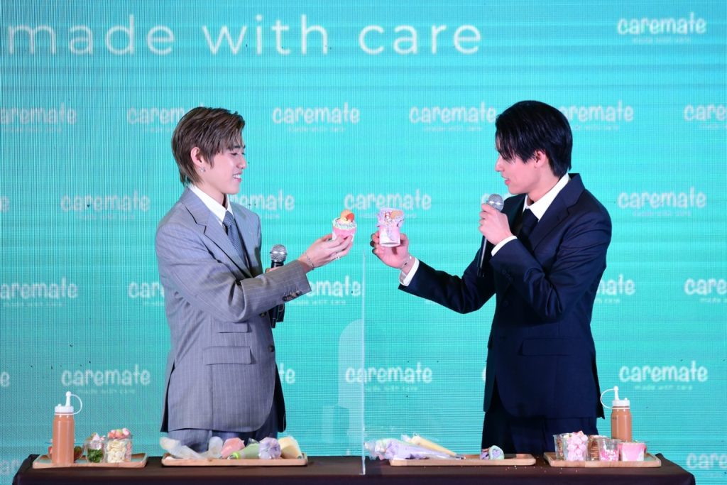 “พีพี” และ “บิวกิ้น” เผยว่า ภายใต้คอนเซปท์ “Made with Care” ซึ่งเราทั้งคู่ใส่ใจดูแลด้วยตัวเองทุกขั้นตอนในการพัฒนาสินค้า ทั้งส่วนผสม เนื้อผลิตภัณฑ์ ตลอดจนบรรจุภัณฑ์ อย่างพิถีพิถันร่วมกับผู้ผลิตระดับโลก โดยผลิตภัณฑ์ดูแลริมฝีปากคุณภาพสูงนี้มี 4 รายการ คือ Caremate Brightening Lip serum สัมผัสแห่งเรียวปากแวววาวขั้นสุด ด้วยลิปเซรั่ม เนื้อสัมผัสบางเบา บำรุงริมฝีปากอย่างล้ำลึกด้วยเบต้ากลูแคน กรดไฮยาลูโรนิก และวิตามินอี เติมความชุ่มชื้นระดับเอ๊กซ์ตรีมให้เรียวปากเอิบอิ่ม ไม่แห้งกร้าน ดูสวยเป็นธรรมชาติและมีสุขภาพดี , Caremate Concentrate Lip Glow ลิปโกลว์ที่ผสานคุณค่าจากมอยเจอร์ไรเซอร์ เบต้ากลูแคน กรดไฮยาลูโรนิก และวิตามินอี เพื่อปกป้องริมฝีปากให้ชุ่มชื้น ช่วยบำรุงเรียวปากได้อย่างล้ำลึก ทำให้ริมฝีปากเนียนนุ่มน่าสัมผัส พร้อมช่วยปรับสีริมฝีปากให้แลดูอมชมพู แวววาว แลดูสุขภาพดีอย่างเป็นธรรมชาติ , Caremate Intensive Lip Mask ลิปมาส์กสำหรับบำรุงริมฝีปากให้เนียนนุ่ม ชุ่มชื้นในข้ามคืนด้วยมอยเจอร์ไรเซอร์ ลดความแห้งกร้าน ทั้งยังเข้าฟื้นบำรุงริมฝีปากได้อย่างล้ำลึก เนื้อบางเบาไม่เหนียวเหนอะหนะ เพื่อเรียวปากแลดูสุขภาพดี ชวนสัมผัสยามตื่นนอน มี 2 กลิ่นในเลือกลิ้มลอง คือ Burnt Caramel และ Strawberry Biscuit