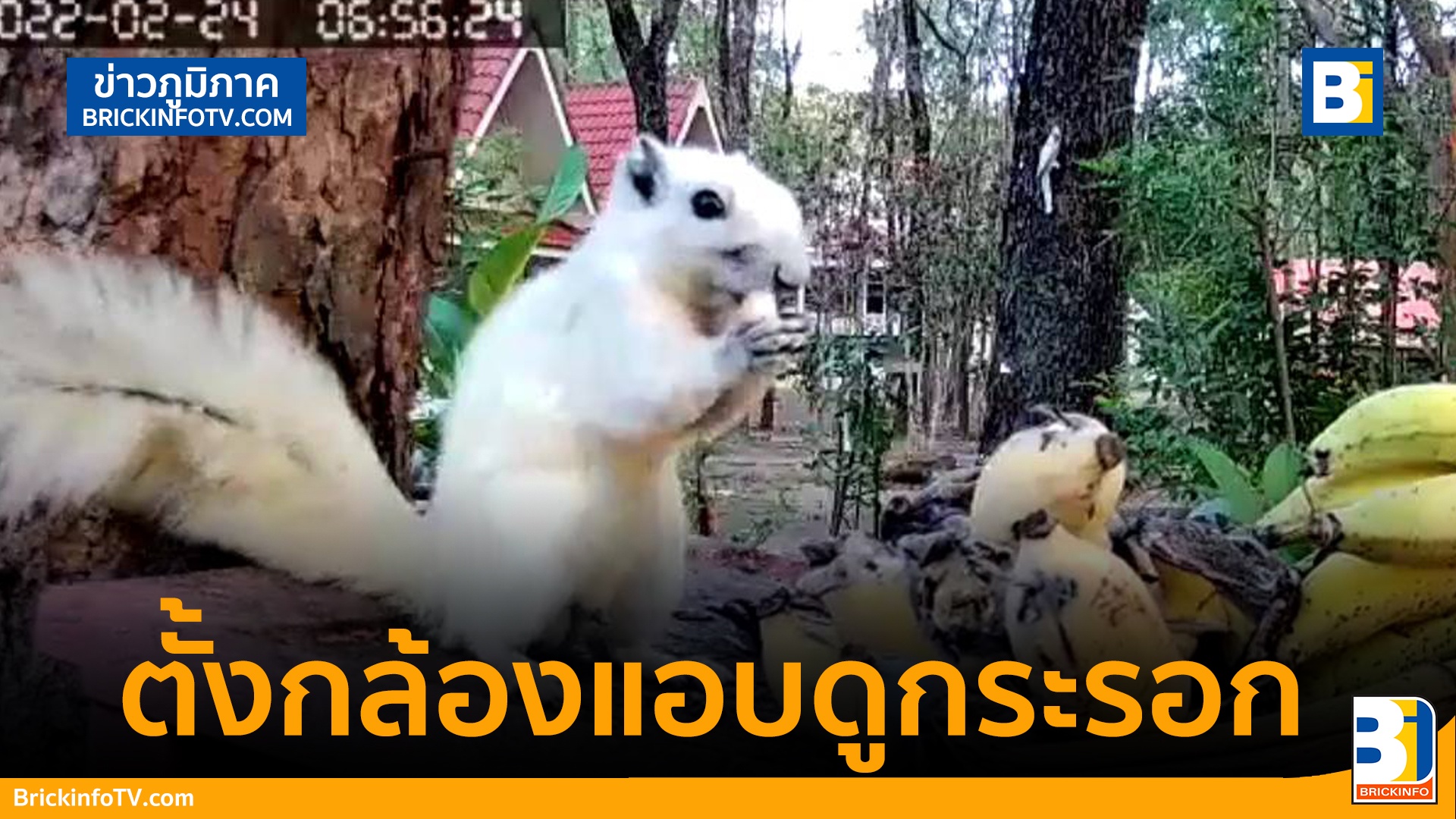 ปราจีนบุรี ตั้งกล้องแอบดูกระรอกแสนรู้แอบลงมากินอาหารก้นบาตร